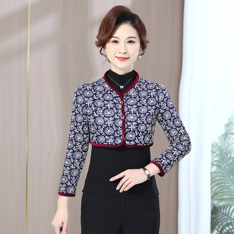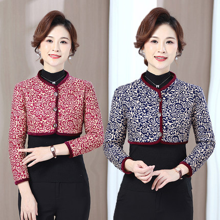 秋冬妈妈装护肩膀长袖加绒保暖防寒坎肩短款小棉衣中老年女装上衣