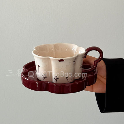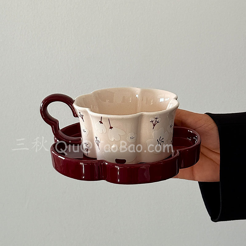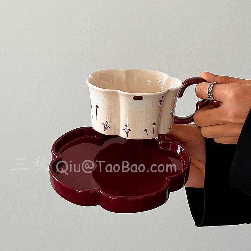 三秋Sanq复古春云粉梦咖啡杯碟中古风下午茶杯拉花拿铁杯小众礼物