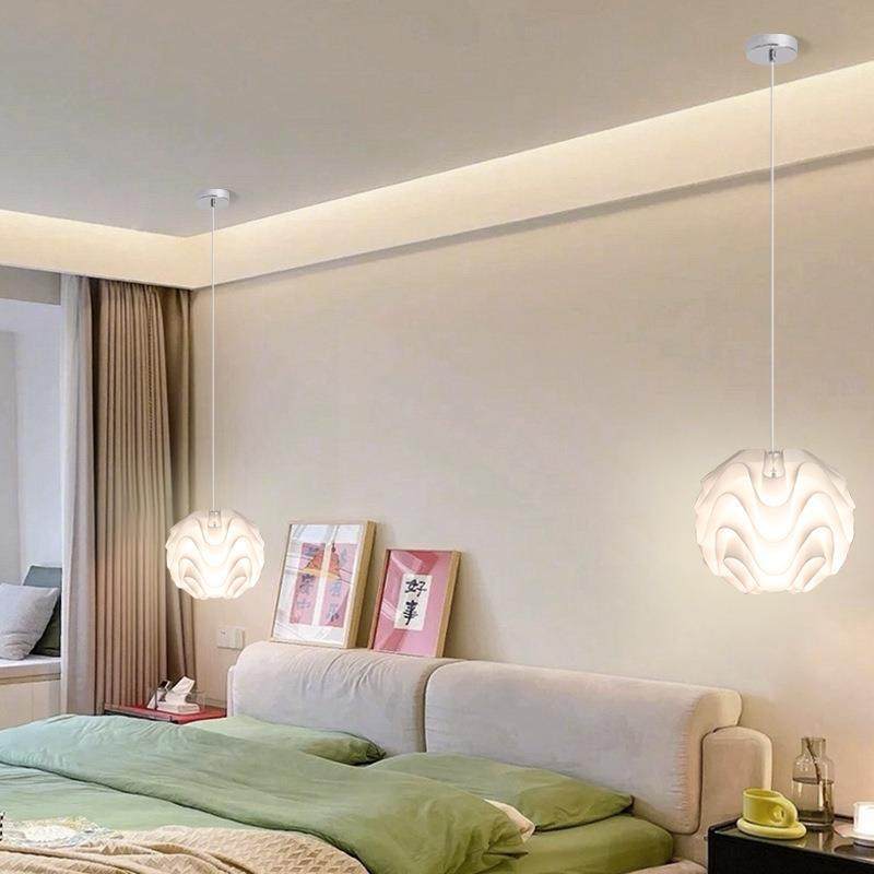 奶油风中式现代简约客厅餐厅吊灯个性艺术白色波浪圆球形卧室吊灯