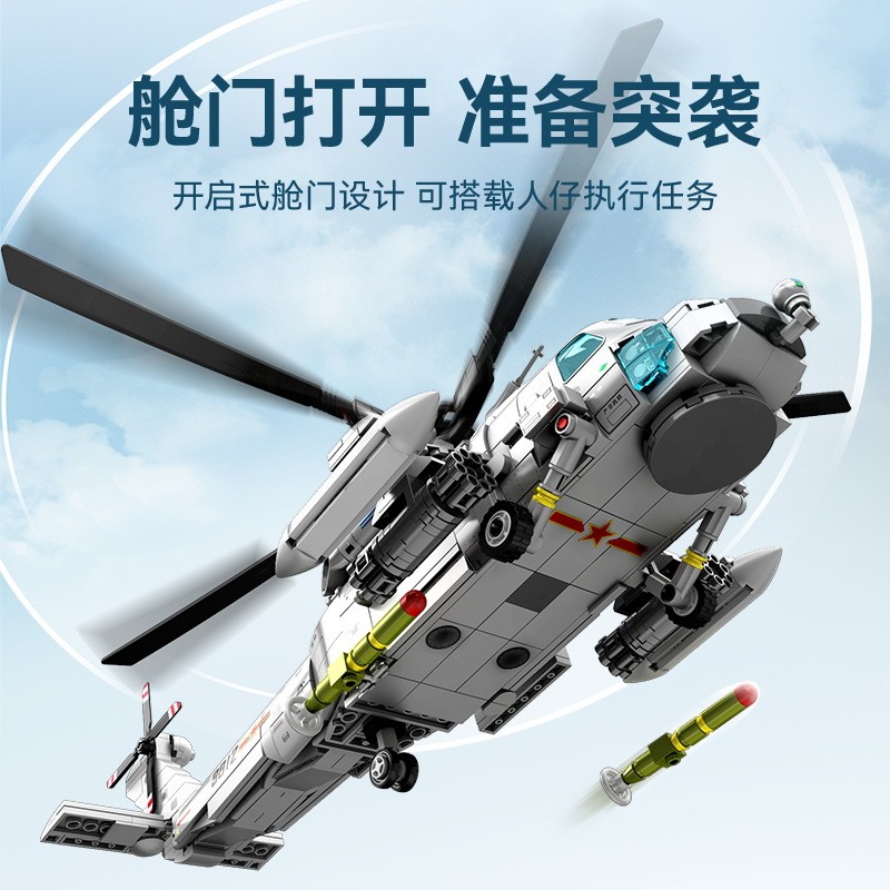 海军型直20军事直升机战斗机新款小颗粒拼装积木组装模型男孩玩具