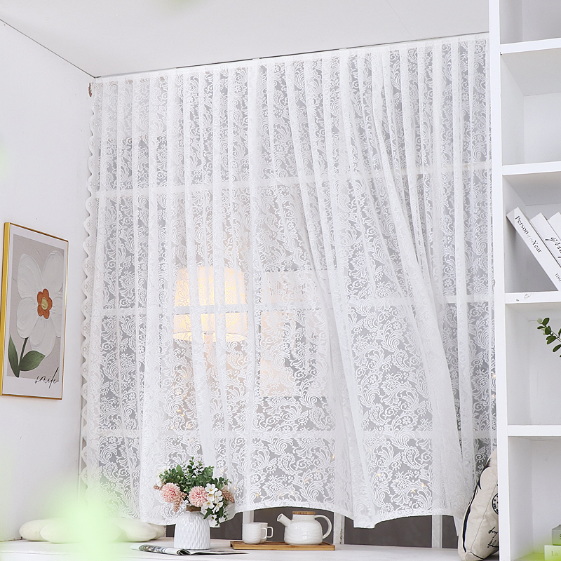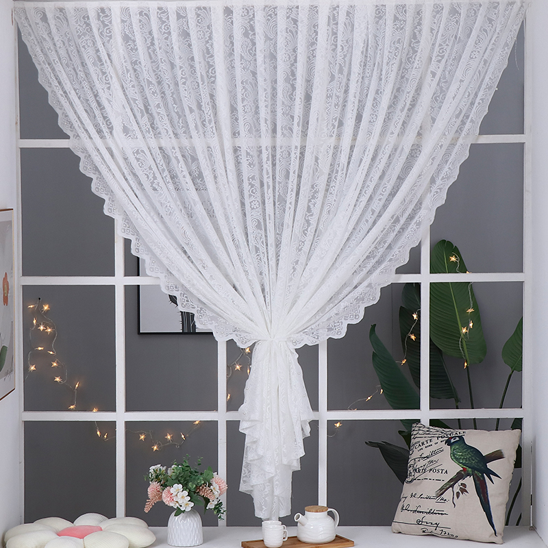 免打孔韩式蕾丝隔断门帘厨房卧室白色纱帘穿杆小飘窗帘半帘魔术贴