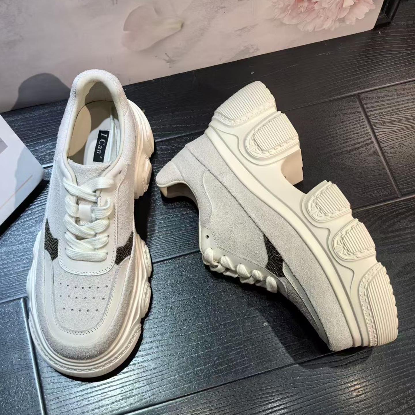 ICAN欧货女鞋2025秋冬新款牛猄皮拼色圆头系带松糕厚底时尚休闲鞋
