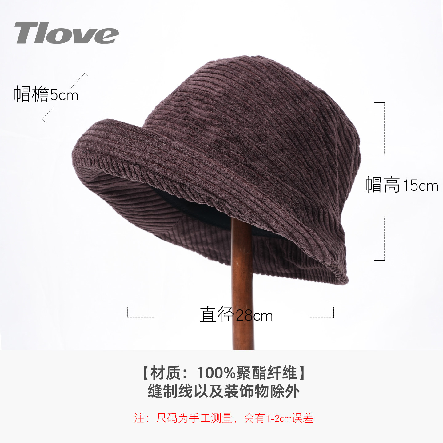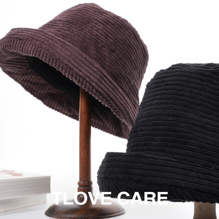 9936日系简约渔夫帽女士秋冬季保暖灯芯绒帽子出街潮流显脸小帽子