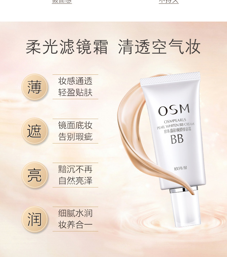 欧诗漫珍珠白bb霜美白遮瑕不易脱妆修容隔离粉底液官方旗舰店正品