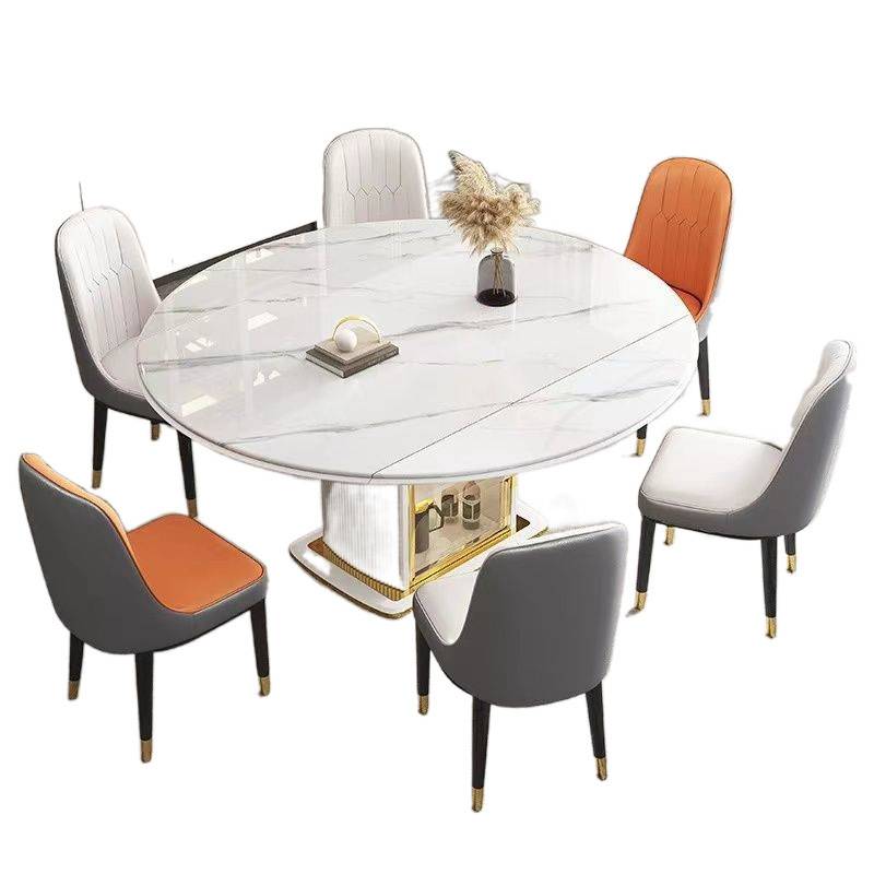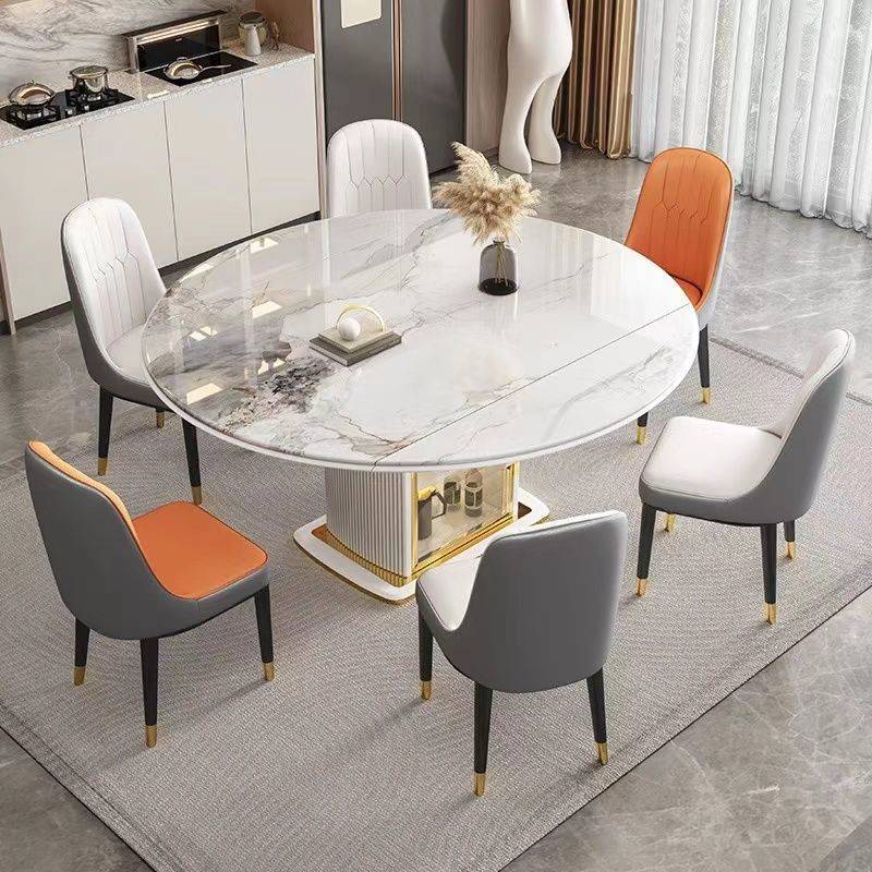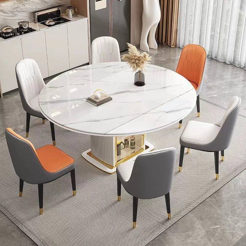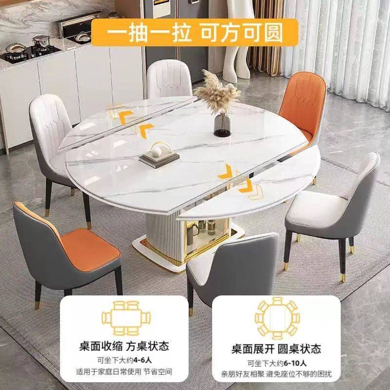 Kka岩板实木餐桌现代简约可伸缩轻奢家用小户型圆形椅组合电磁炉