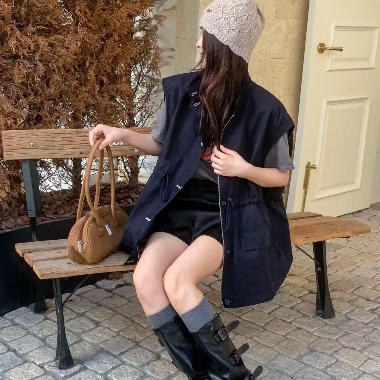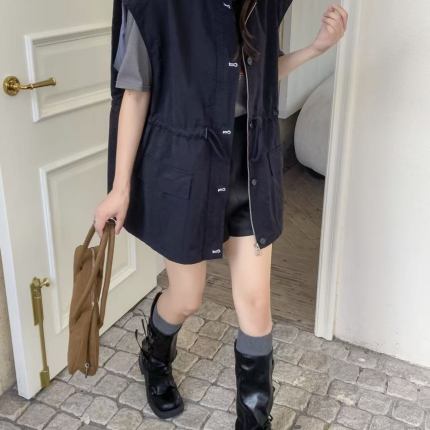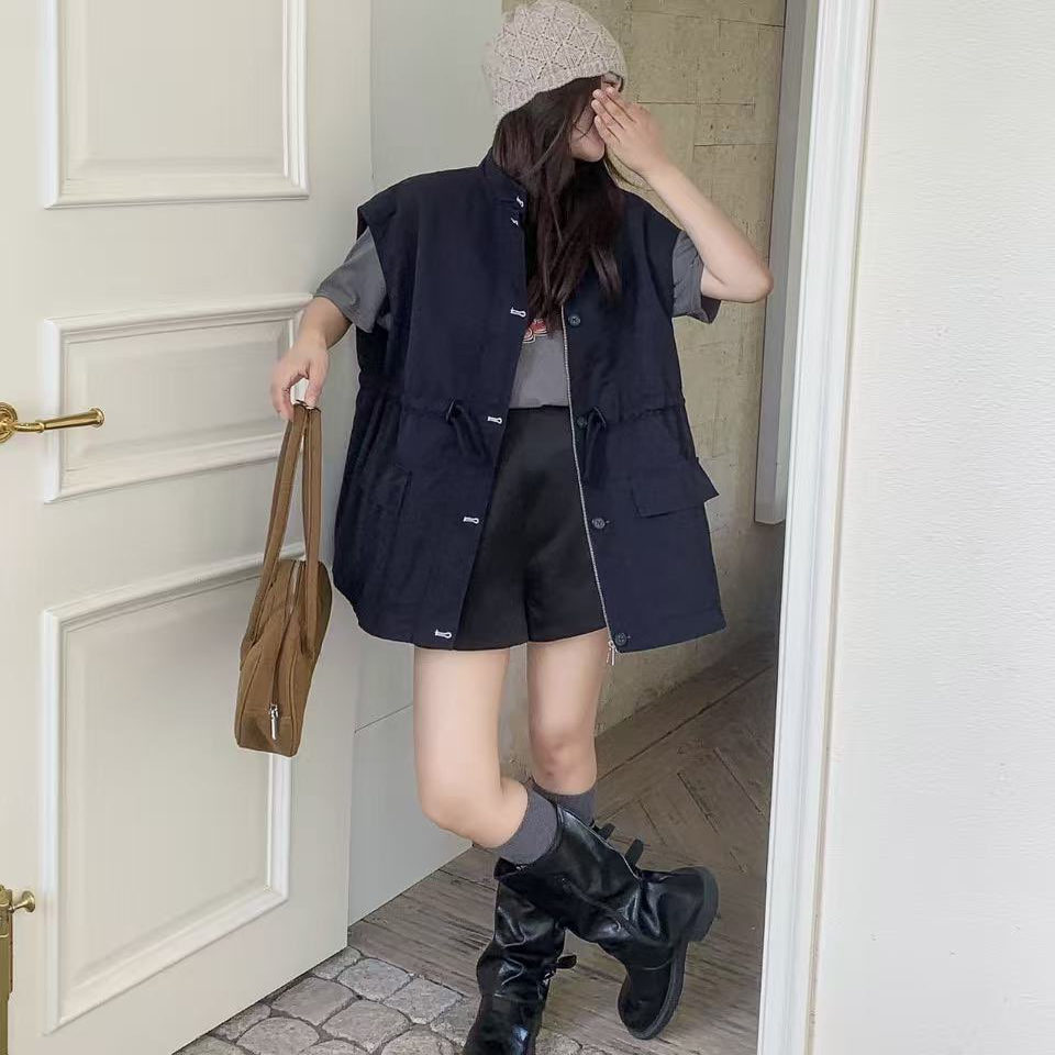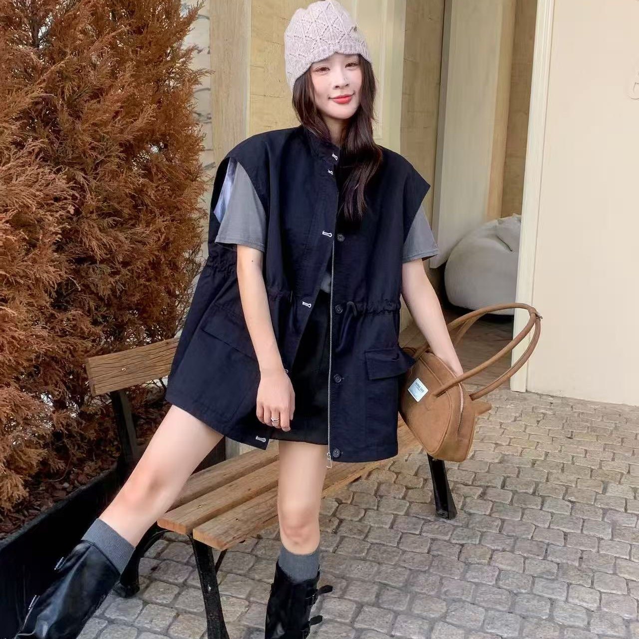 立领马甲女秋季新抽绳收腰百搭宽松休闲背心坎肩叠穿上衣雪0.52