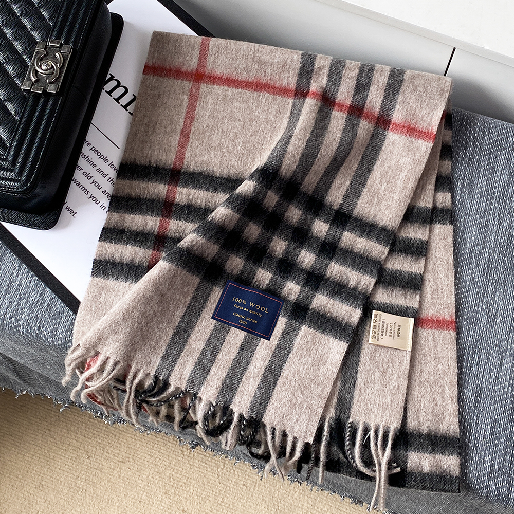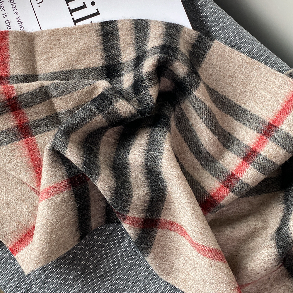 尖货!澳洲100%纯羊绒围巾女冬季高级感驼色格子羊毛围脖男送礼物