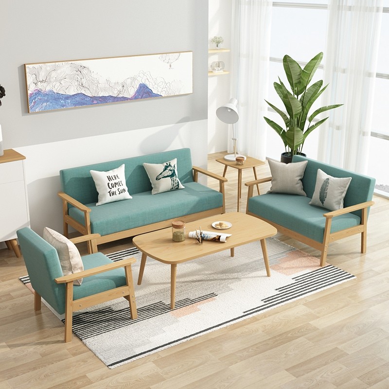 现代布艺三人位实木沙发茶几小户型客厅卧室出租房办公椅