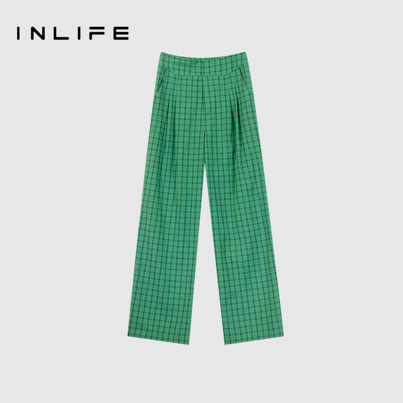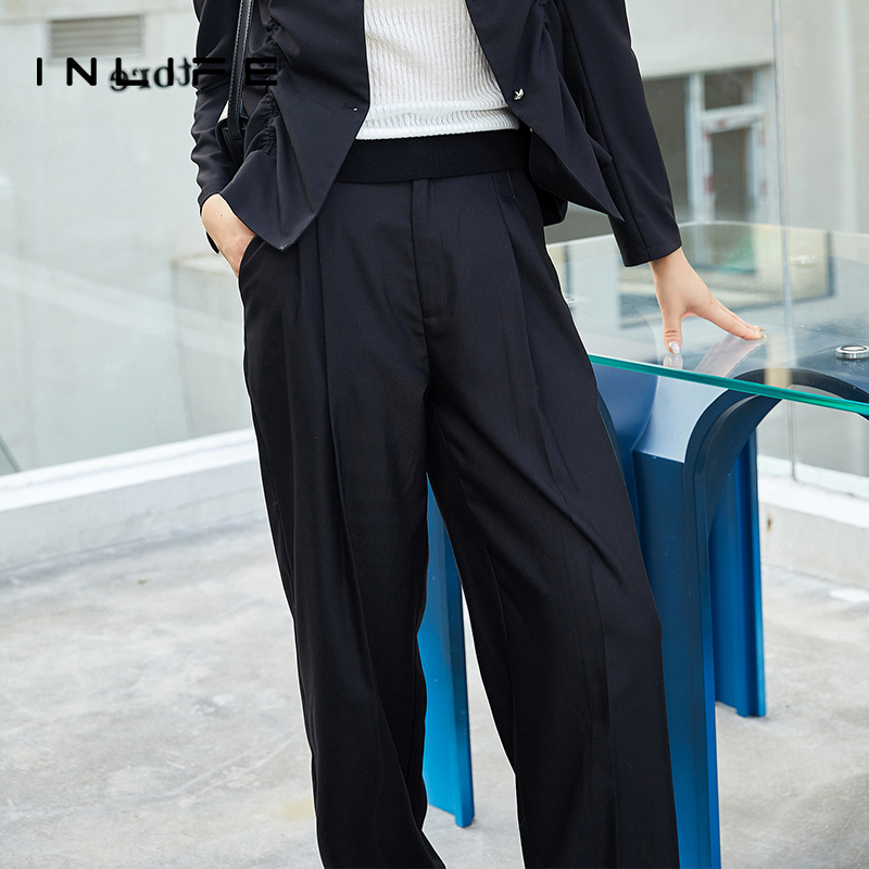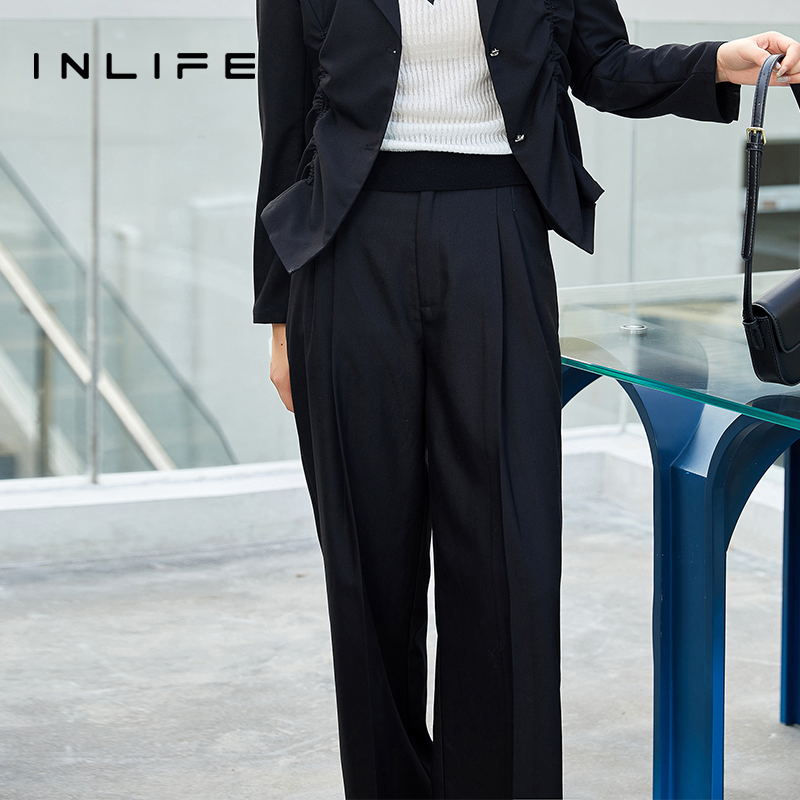 inlife裤子春秋女2025新款休闲裤西装裤高级感垂感黑色宽松阔腿裤
