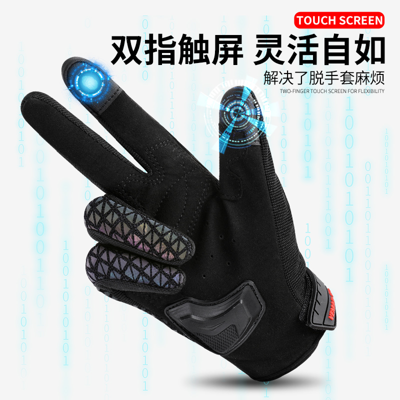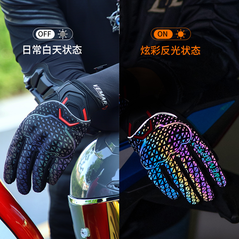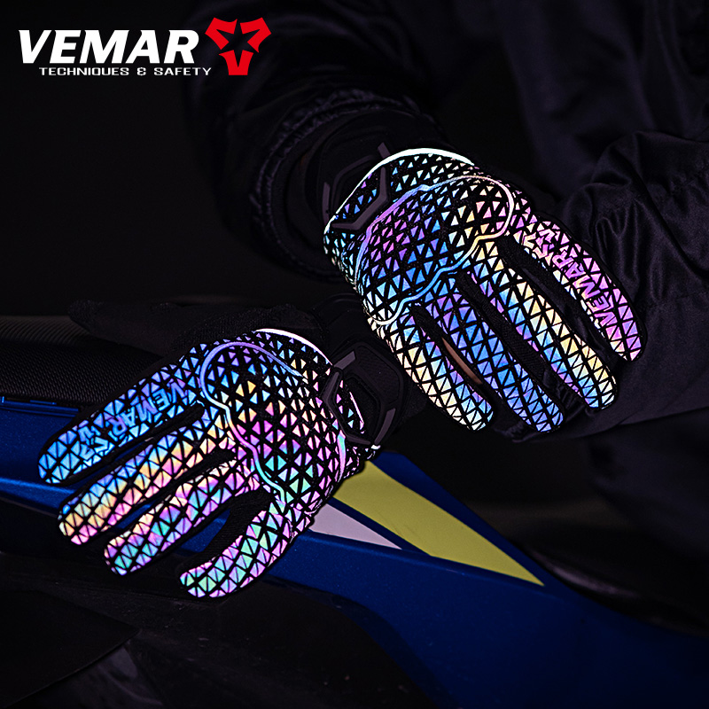 vemar冬季摩托车骑行手套男女保暖防风炫彩反光机车触屏四季手套