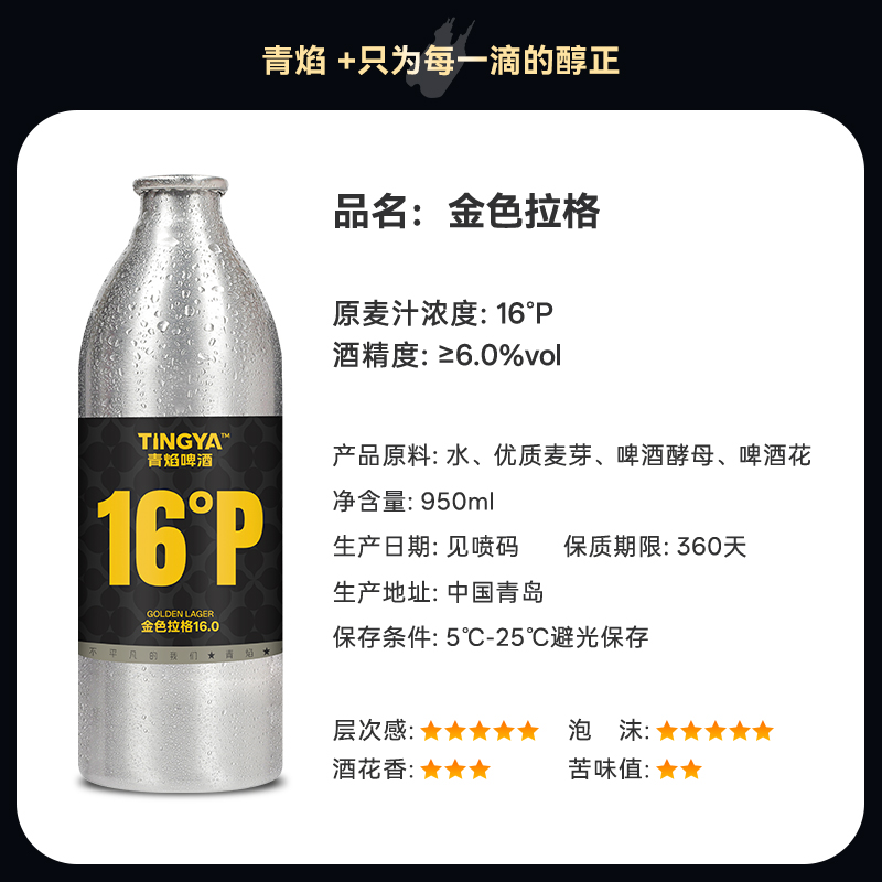青焰精酿原浆啤酒16度金色拉格罐
