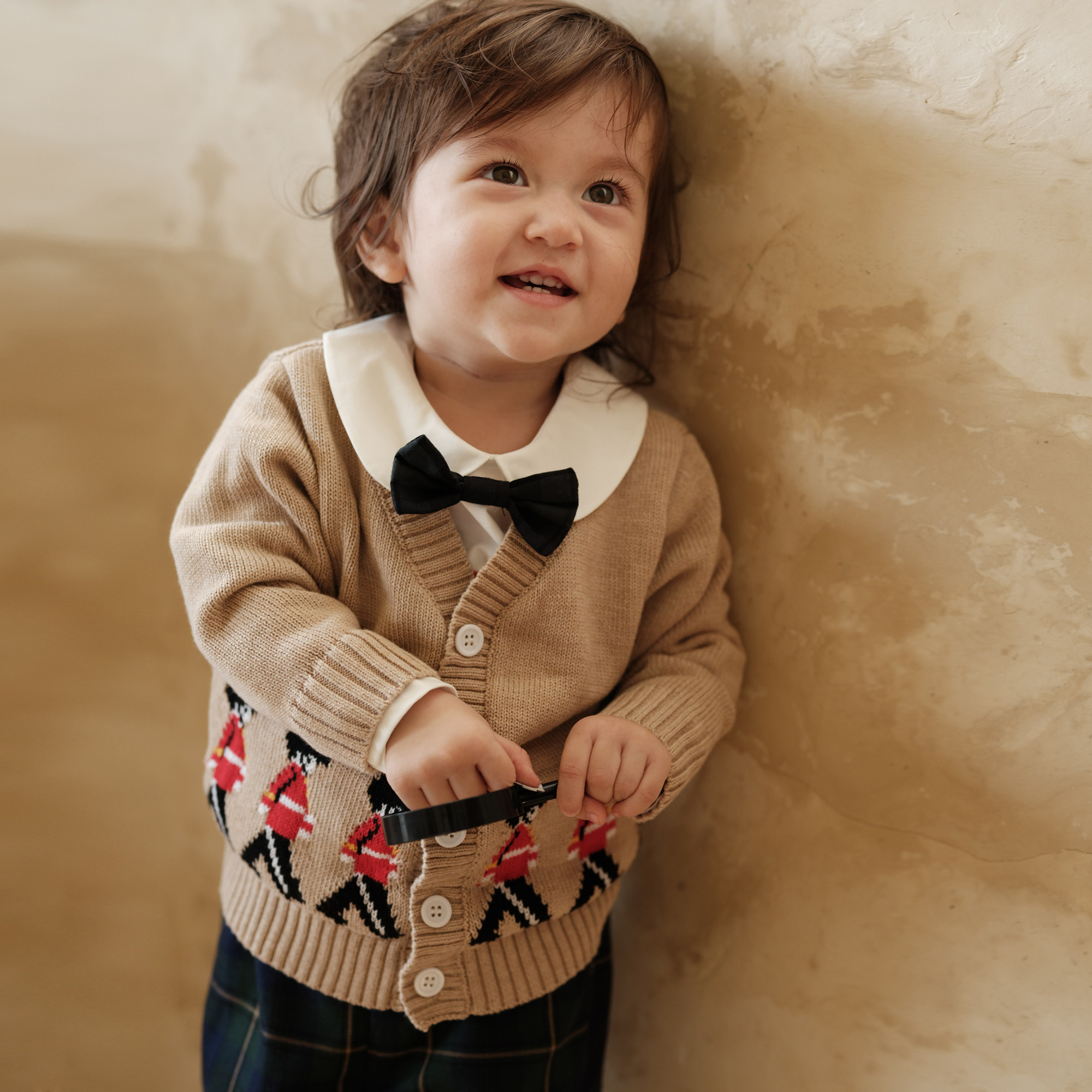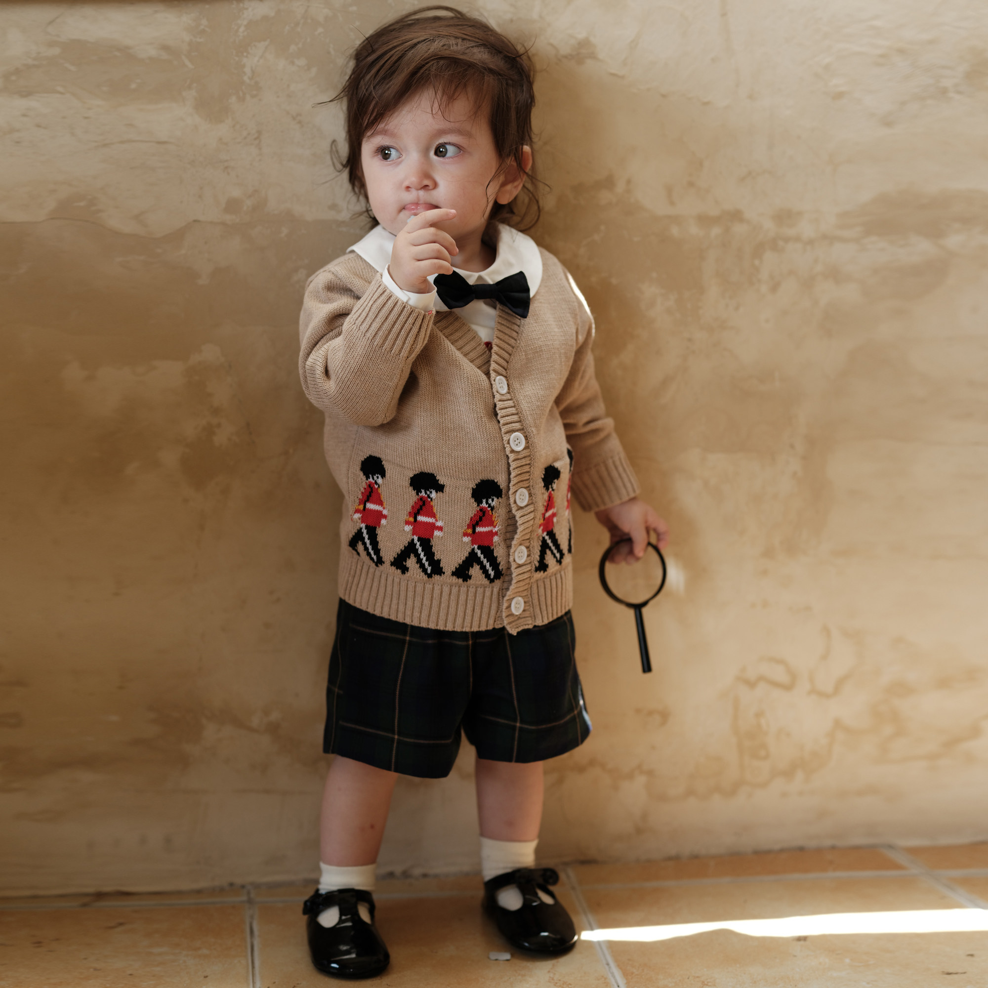 Three Sailors男童针织上衣0-5岁英伦士兵开衫纯棉长袖外出毛衣秋