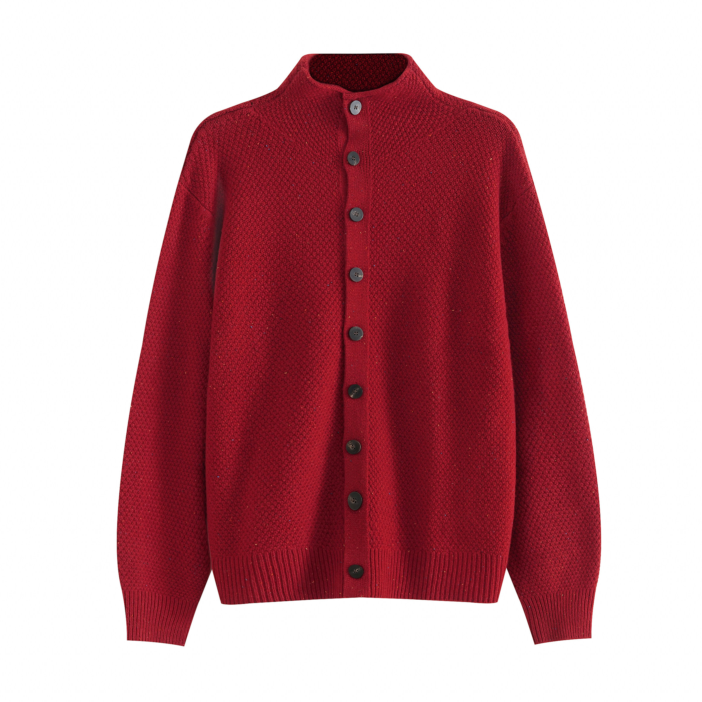 冬季绵羊毛沙漏领桂花针花纱长袖针织开衫