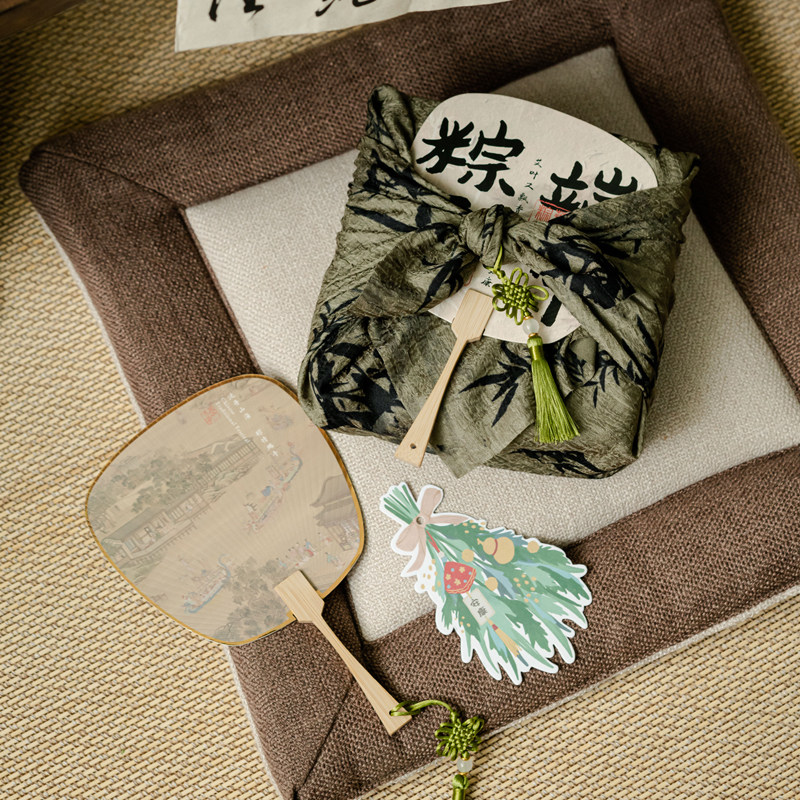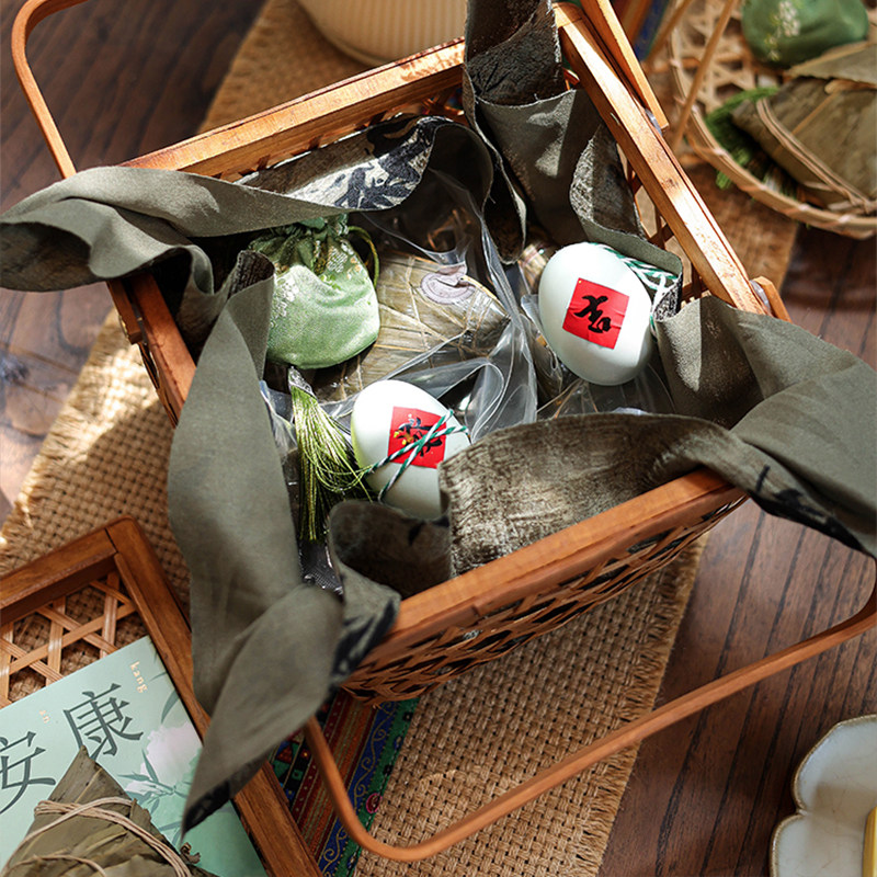 国风端午节竹纹麻布印花方巾艾草青团棉布手工绿豆冰糕点心裹布包
