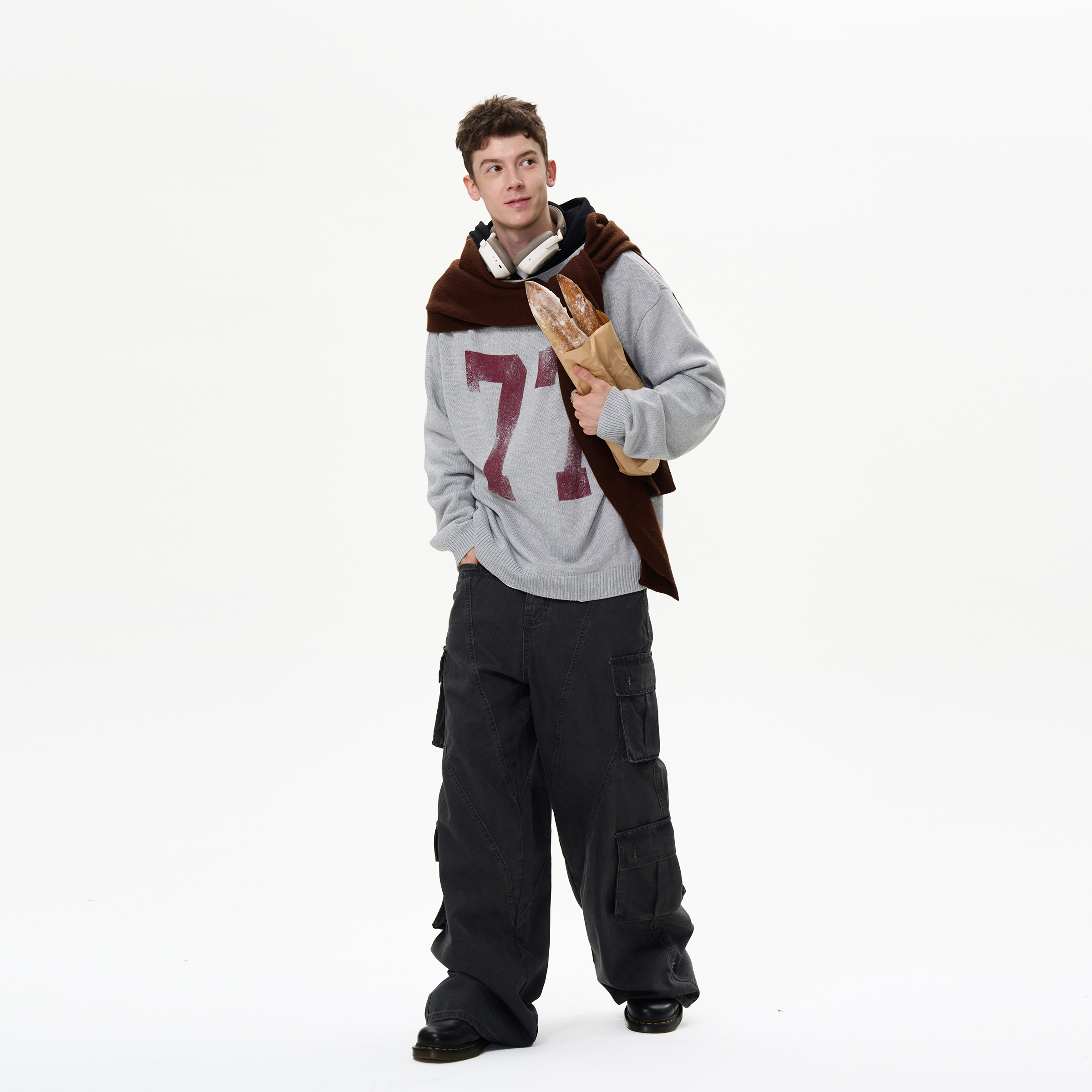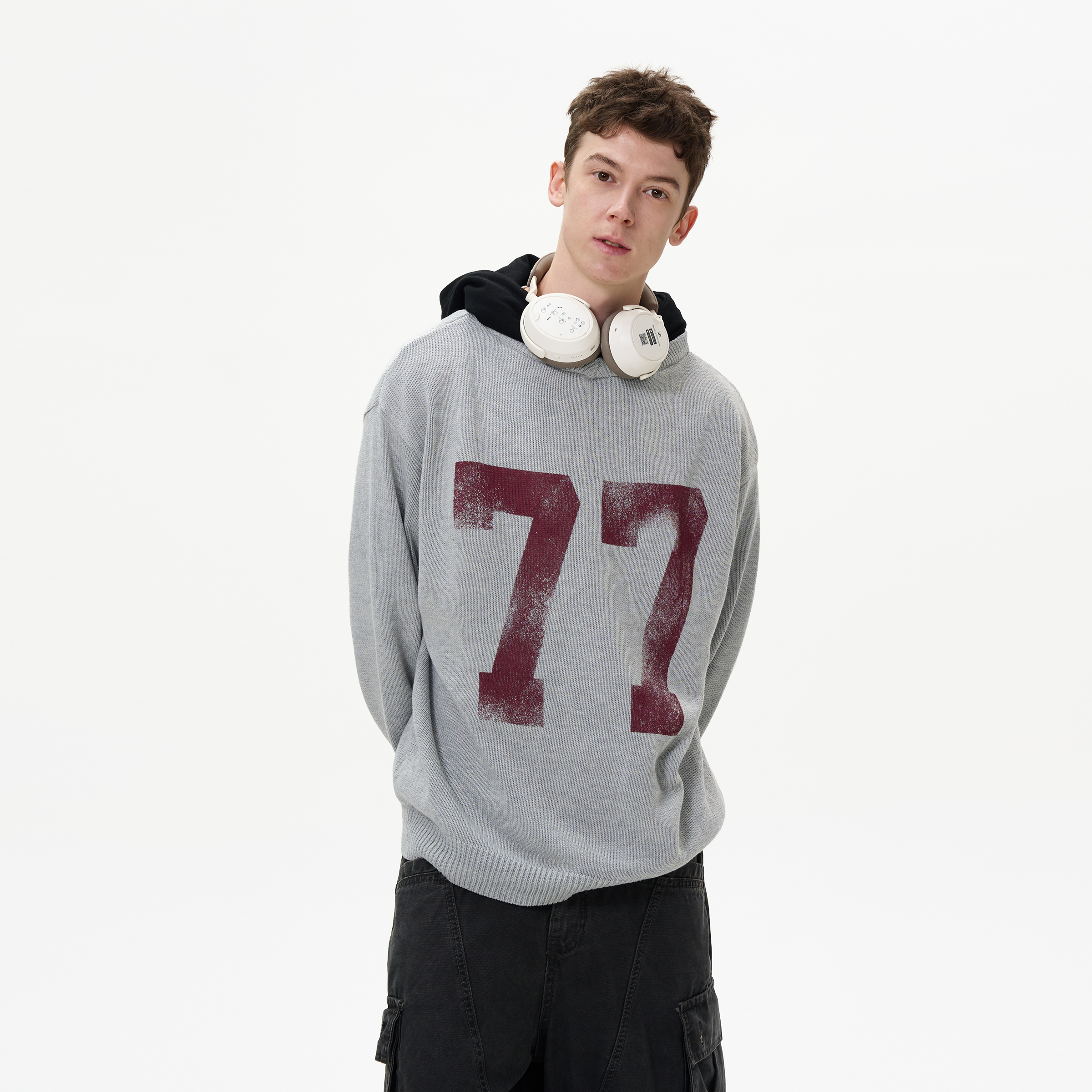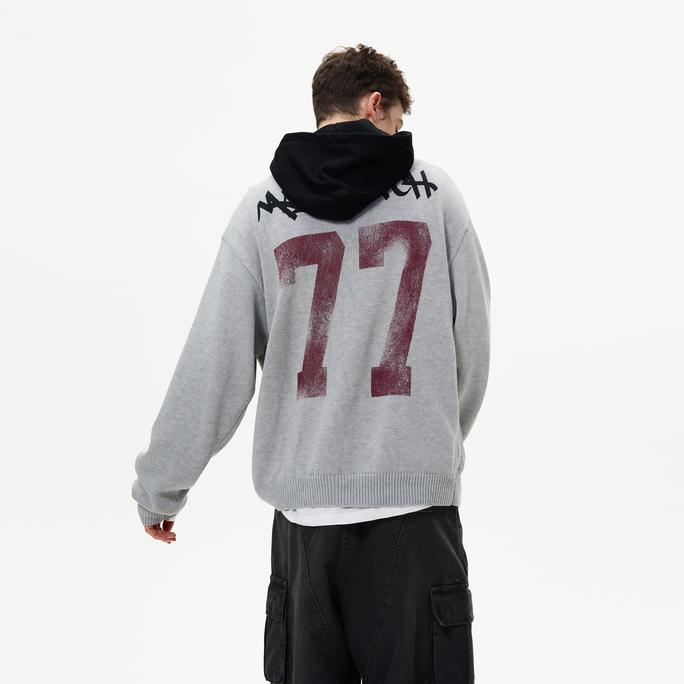 MADWITCH秋冬新款复古印花连帽毛衣男女宽松休闲设计感撞色针织衫