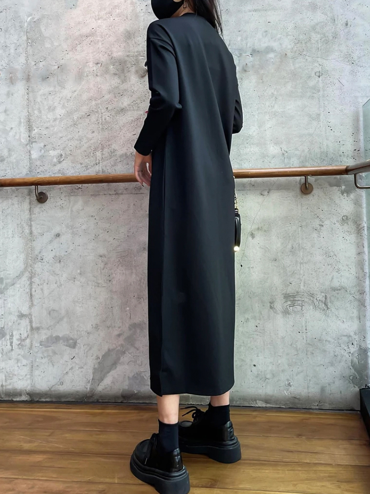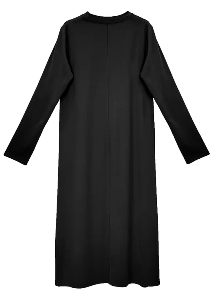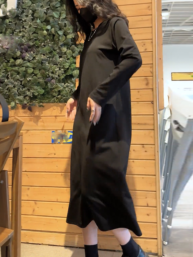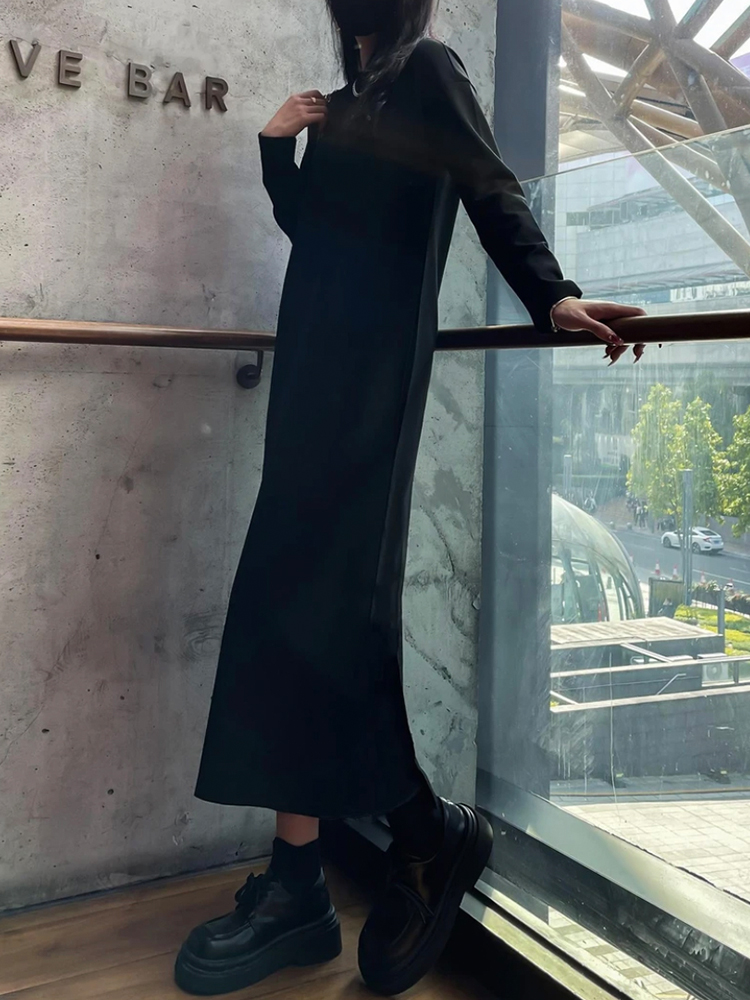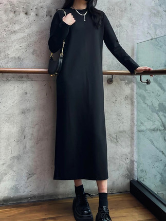 欧货高端大码宽松长款打底小黑裙子春夏秋款百搭长袖简约连衣裙女