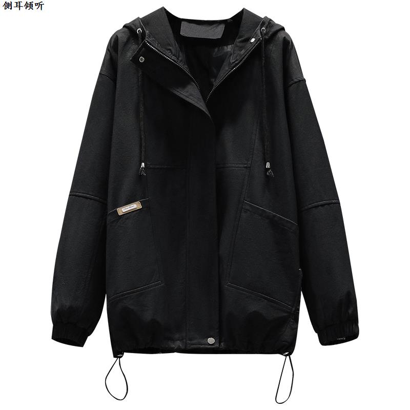 大码休闲连帽风衣外套女春秋新款韩版宽松胖mm遮肉显瘦减龄200斤