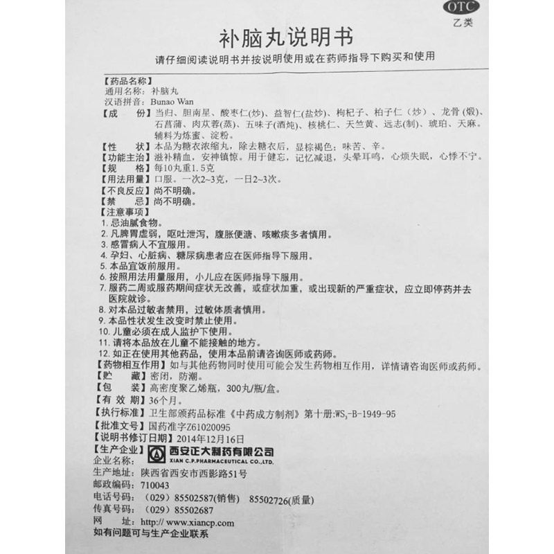 正大补脑丸300丸滋补精血安神镇惊健忘记忆减退头晕耳鸣心烦失眠