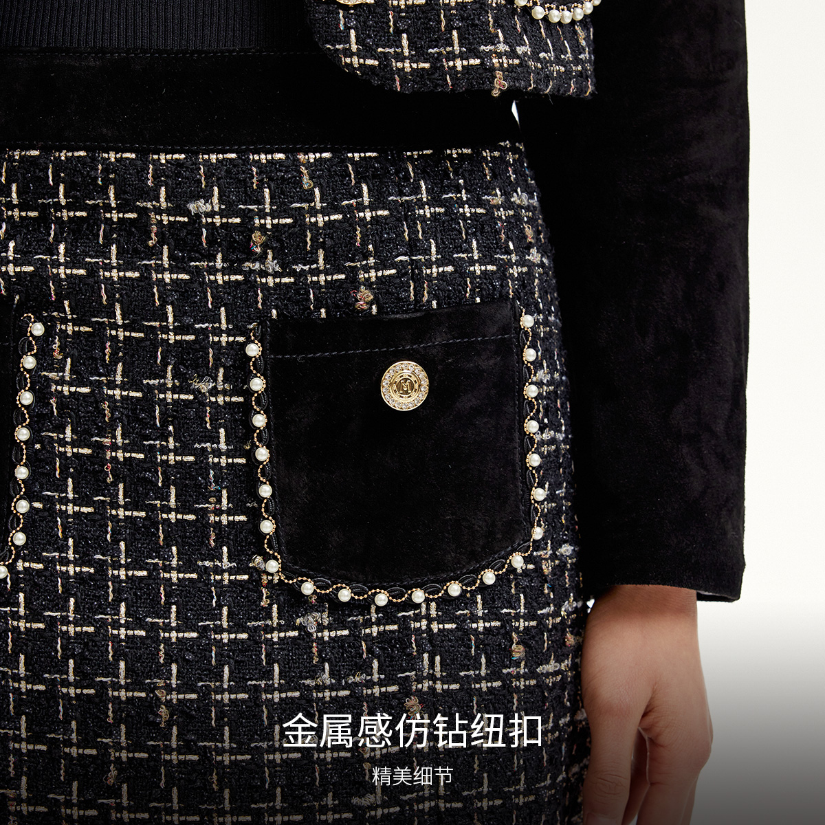 Vero Moda半身裙2025春季新款仿珍珠装饰亮丝小香风皮裙325111019