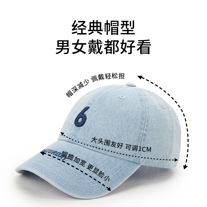 热风帽子2025年秋季新款水洗牛仔棒球帽情侣潮牌鸭舌帽字母帽子女