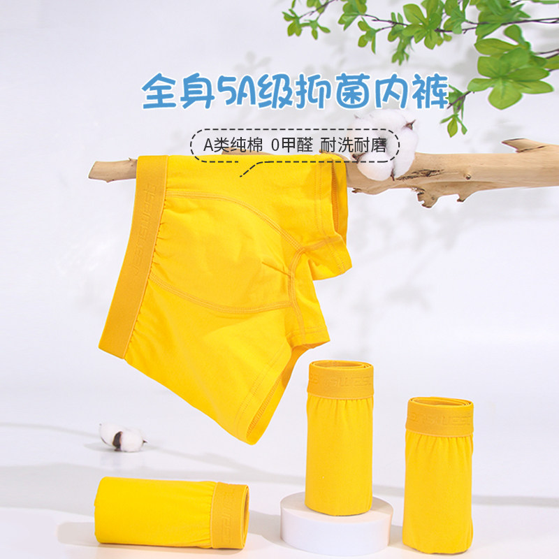 真维斯黄色儿童内裤男童纯棉平角裤中大童A类初高中学生大码短裤