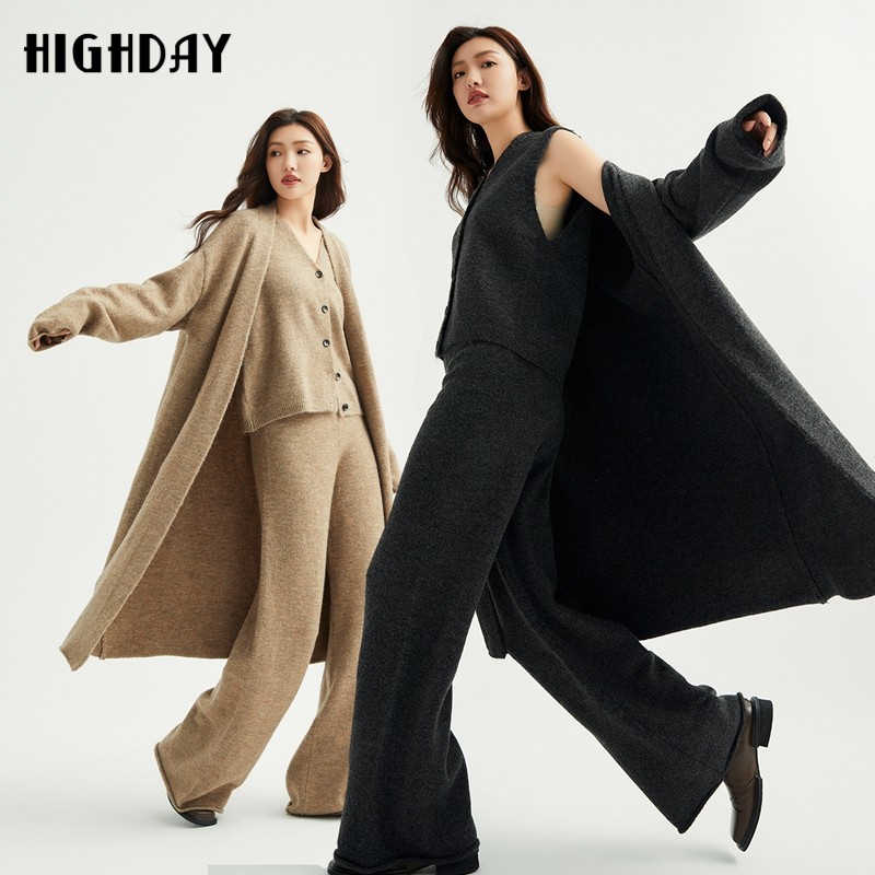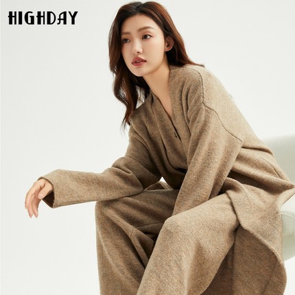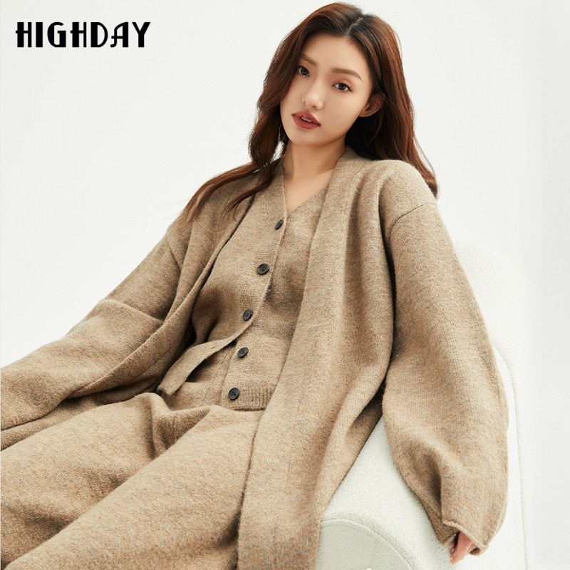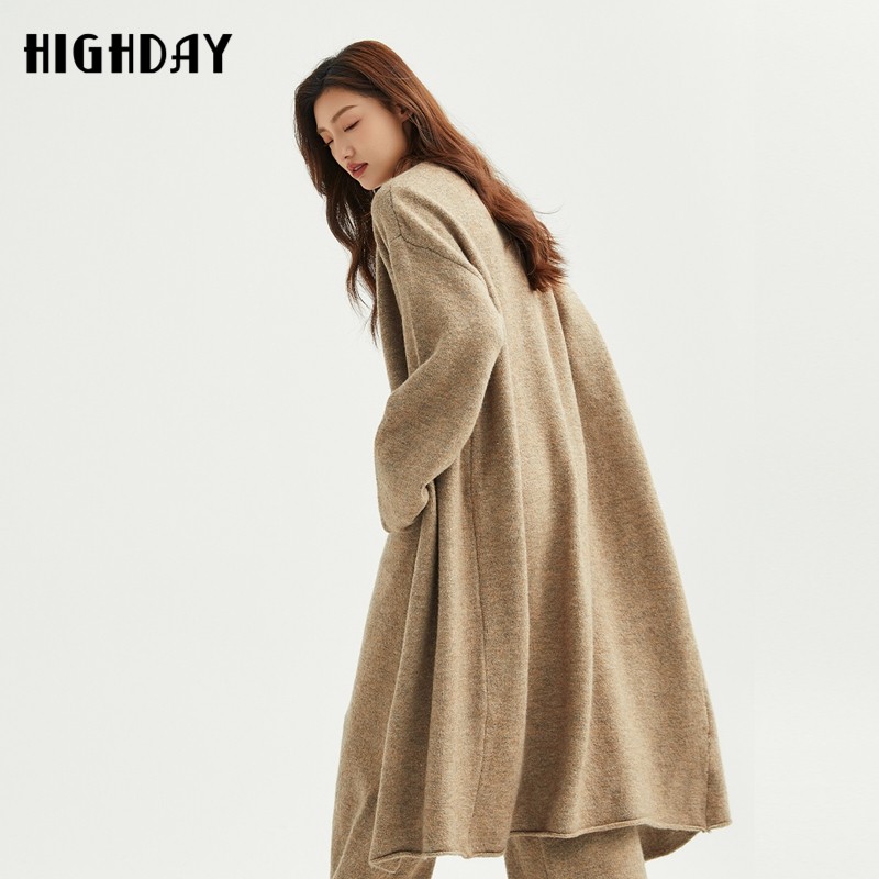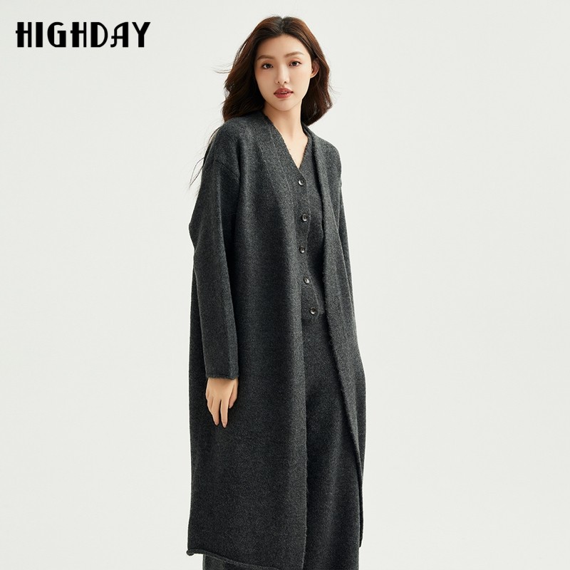 highday轩日2025春秋新款中长针织开衫女休闲简约慵懒风长袖外套