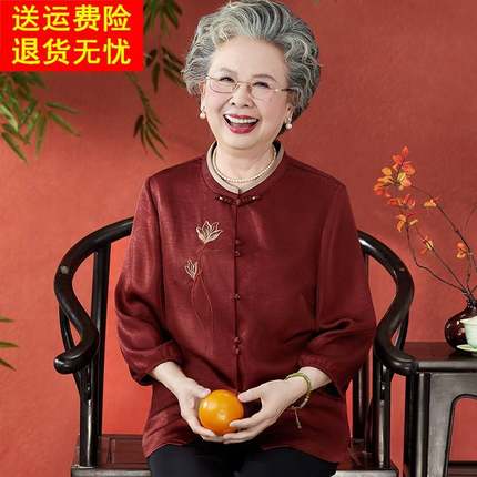 老年人夏装女奶奶中式绣花衬衫中老年妈妈夏季国风喜庆生日婚礼装
