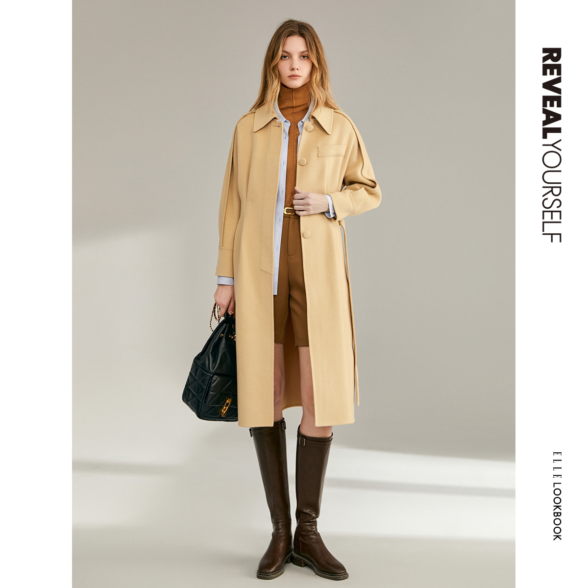 秋季中长款双面呢大衣ELLE绵羊毛