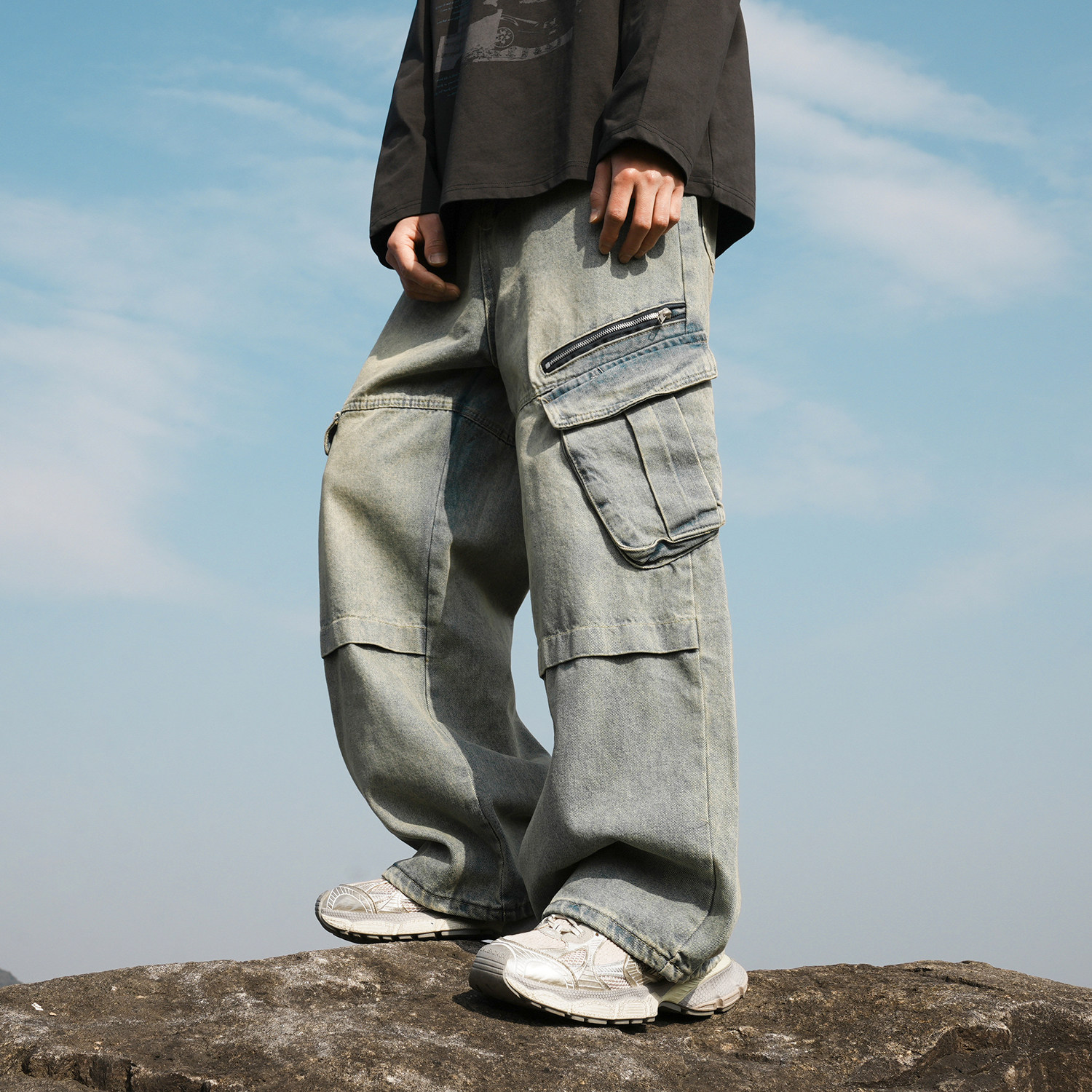 GOGOSOON春秋新款牛仔裤子2025男生美式复古水洗工装直筒潮流宽松