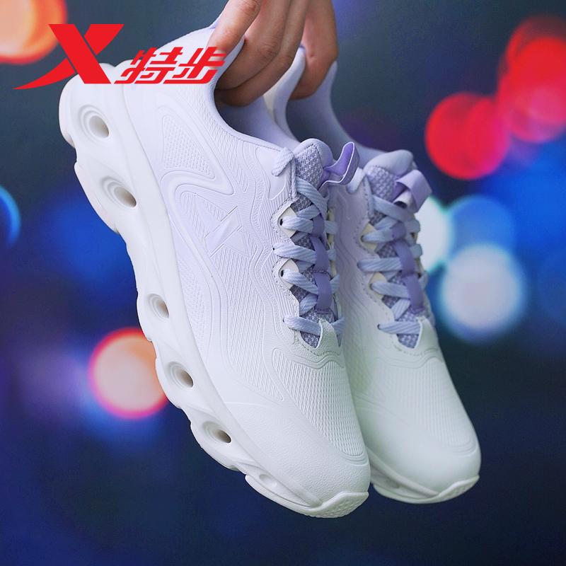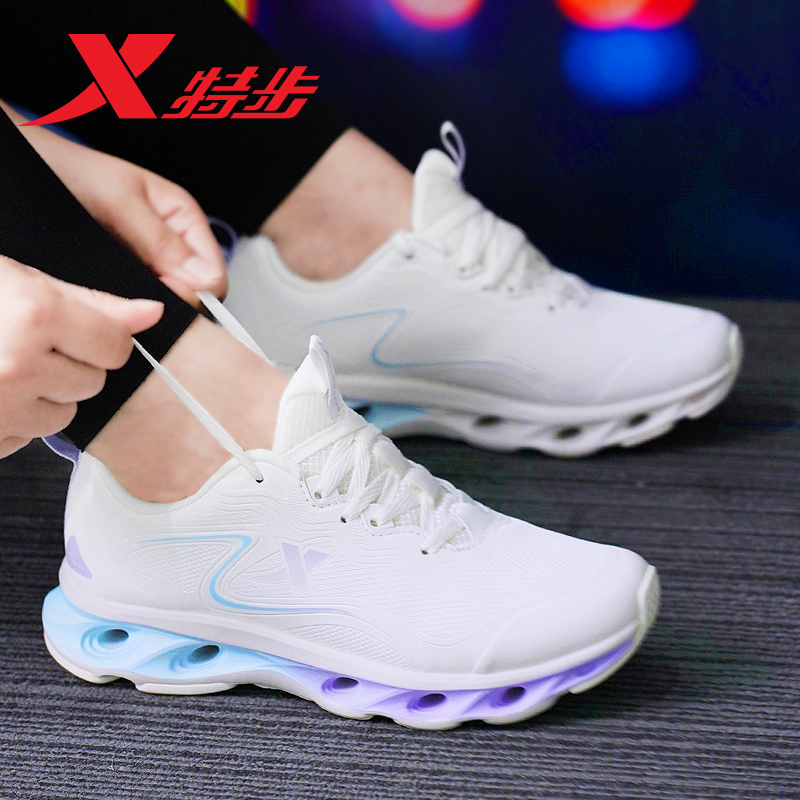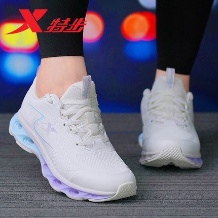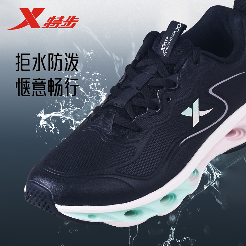 特步女鞋春秋防水学生皮面运动鞋新款休闲鞋减震软底跑步鞋子女款