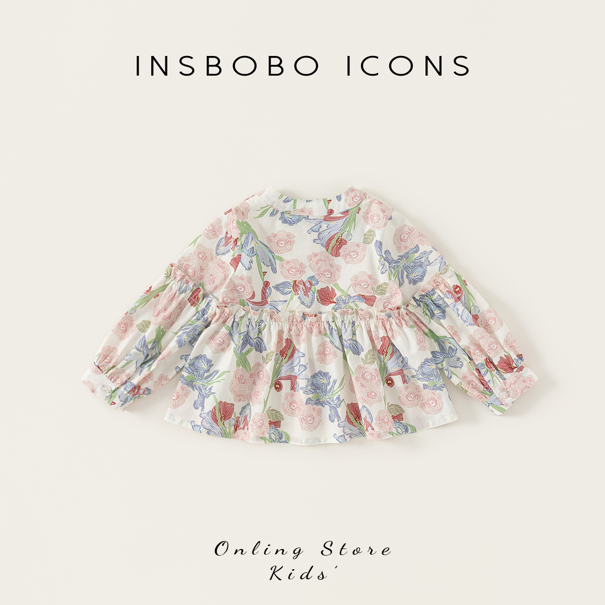 INSbobo女童衬衫春秋款洋气女宝花衬衣秋季儿童娃娃衫宝宝童装潮