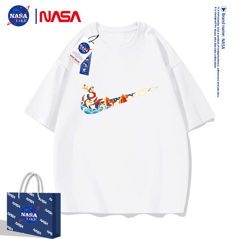 NASA联名NK潮牌中国风儿童纯棉短袖t恤男童女童夏装红色上衣亲子