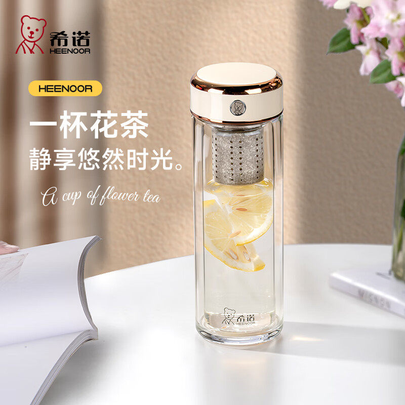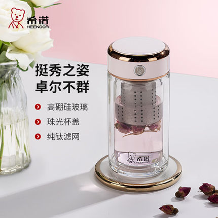希诺双层玻璃杯2025新款高档银离子抗菌水杯男女士茶水分离泡茶杯