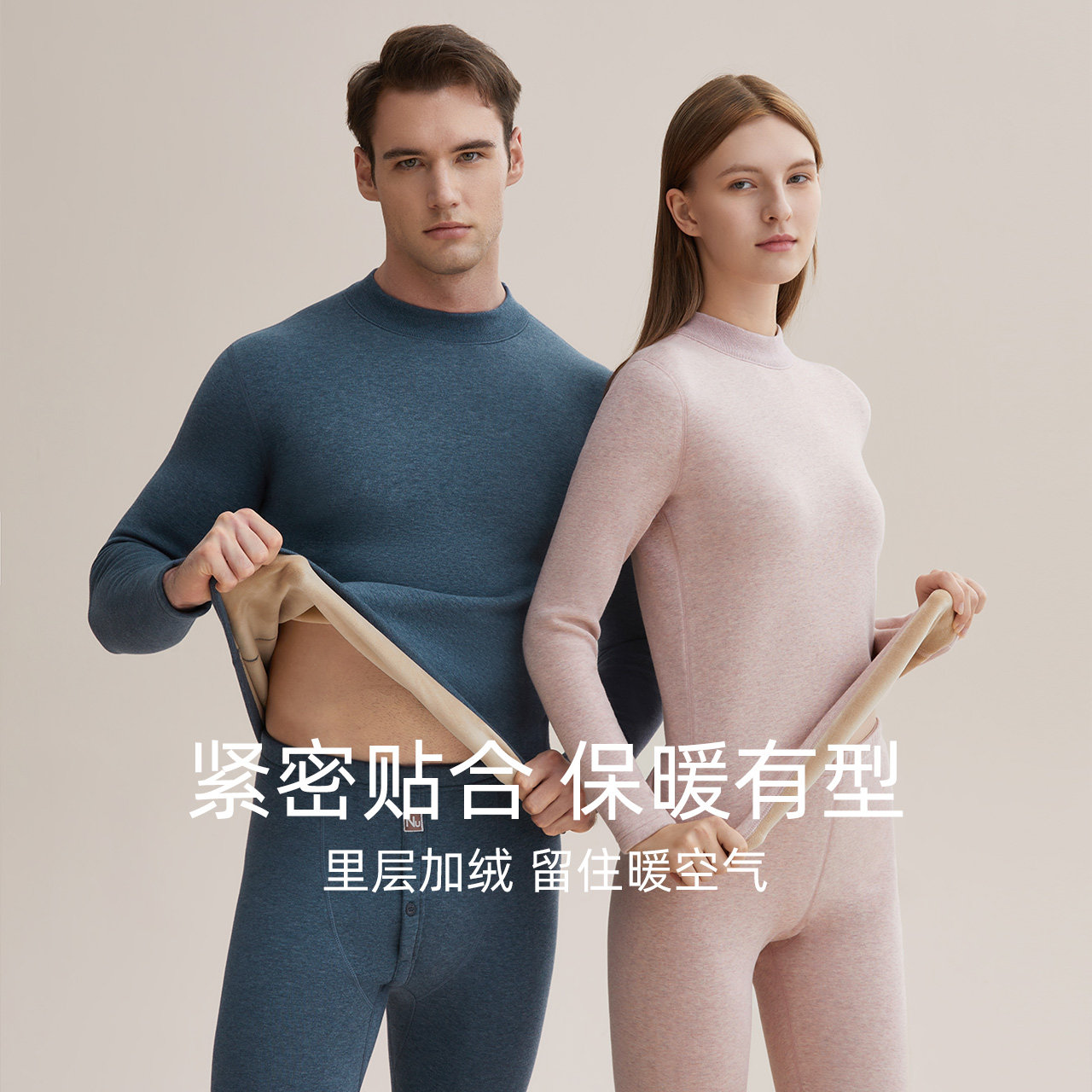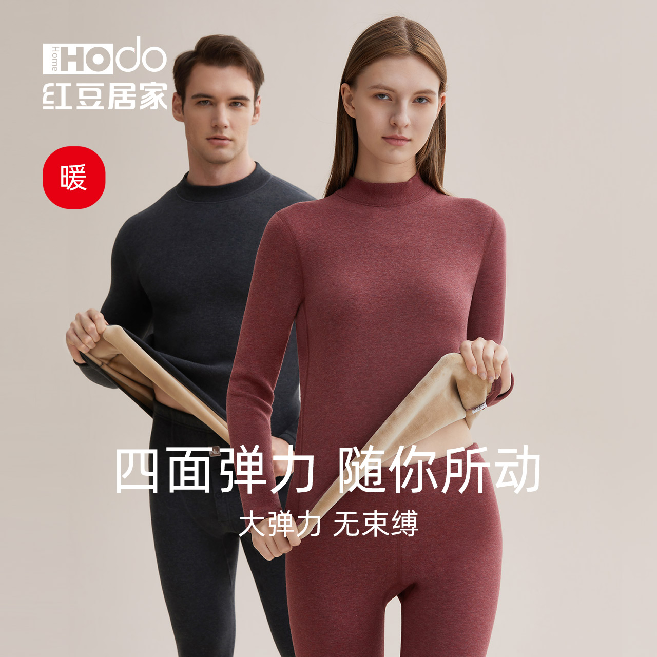 红豆居家半高领保暖内衣套装中老年秋衣秋裤女防寒加绒加厚男冬季