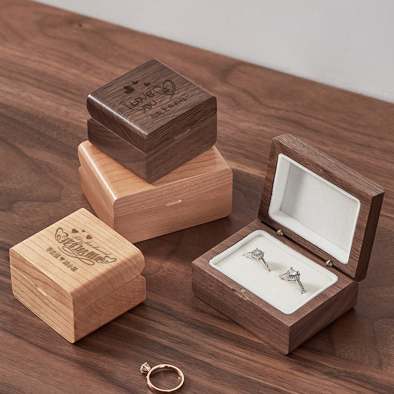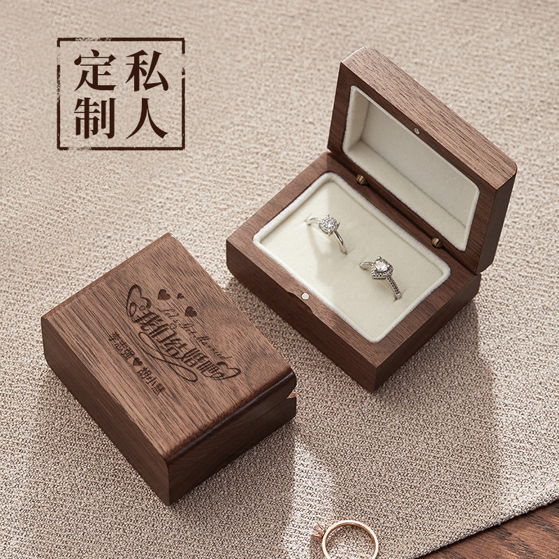 木质戒指盒高档结婚求婚钻戒盒婚礼仪式双戒单戒戒指盒子定制刻字