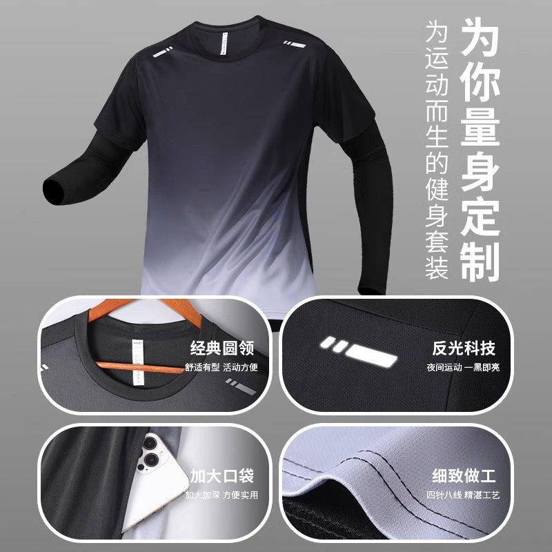 运动套装男跑步训练服青少年骑行秋季速干中考田径初中生羽毛球服