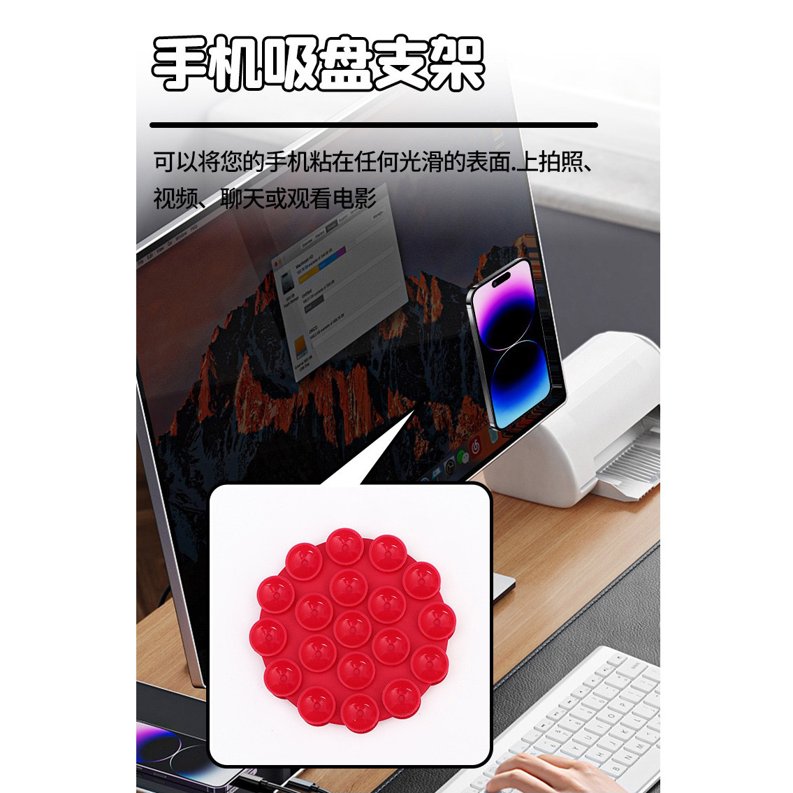硅胶双面吸盘便携可移动手机支架