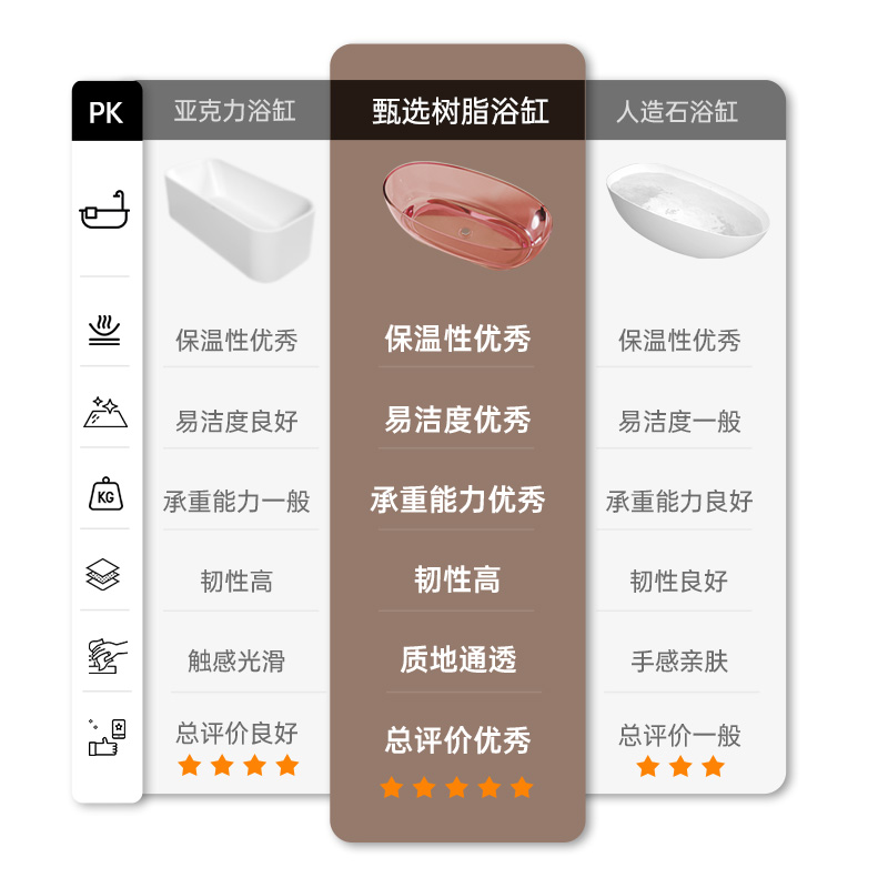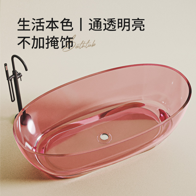 浪鲸透明浴缸人造石水晶彩色独立式网红薄边情侣民宿酒店定制370