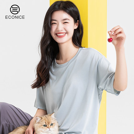 带胸垫睡衣女夏薄款冰丝凉感短袖短裤可外穿大码莫代尔家居服套装