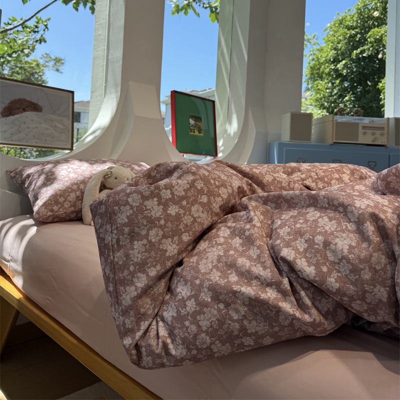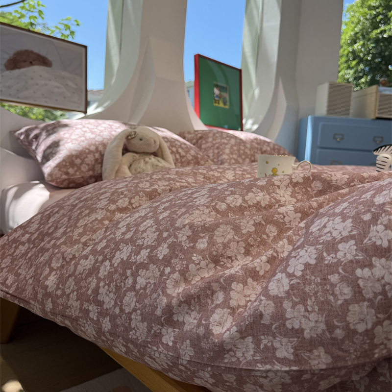 美式秋冬加厚保暖豆沙碎花纯棉磨毛床上四件套1.5m1.8米床单被套