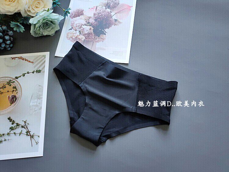 三80-120斤外贸BR黑色冰丝网纱低腰女宽边三角裤包臀无痕小码内裤
