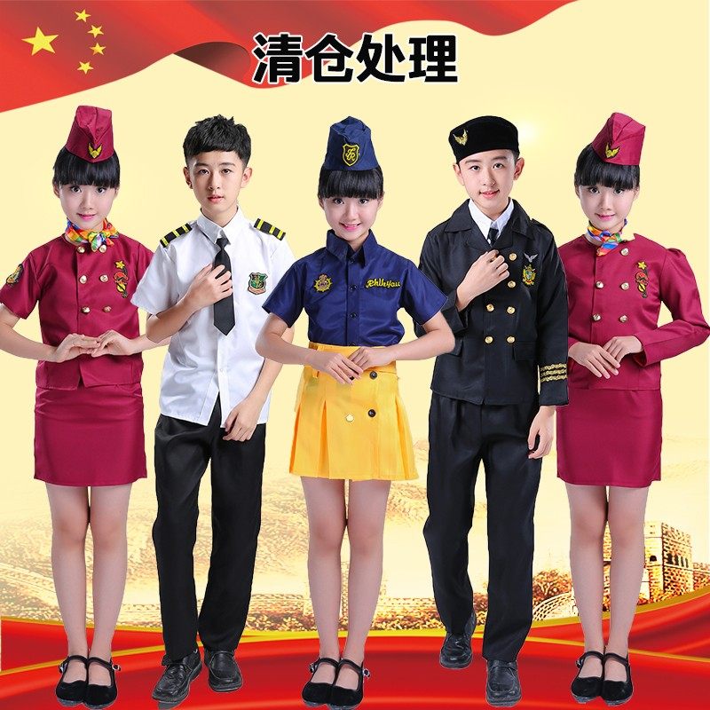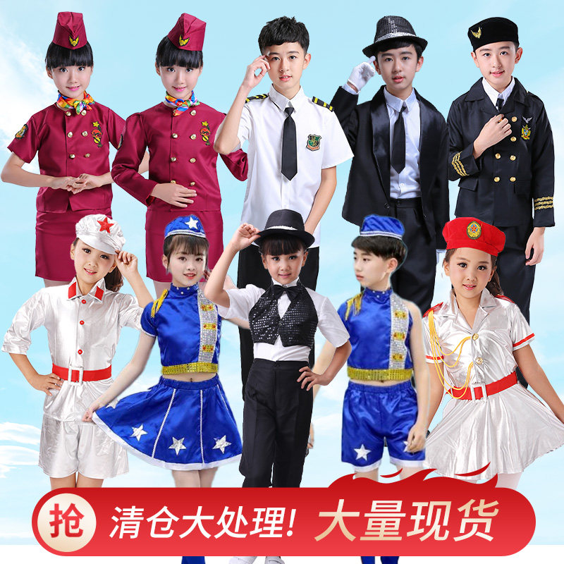 小蓝海军演出服装儿童表演服兵娃娃空姐男女童啦啦操杰克逊舞蹈服