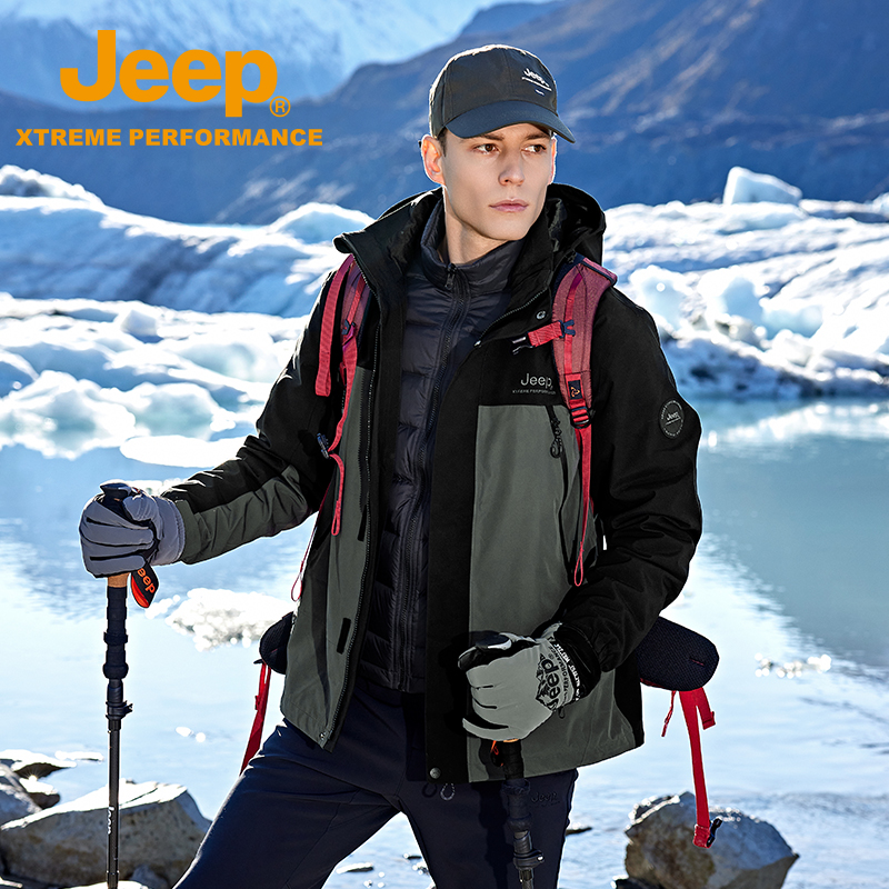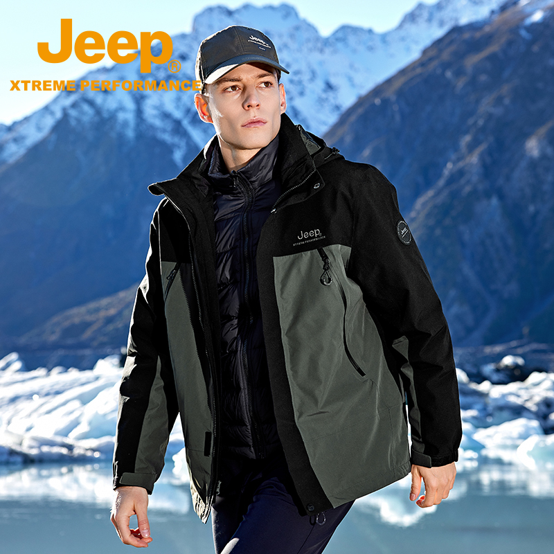 Jeep吉普三合一冲锋衣户外防风进藏登山服男士秋冬鹅绒防水羽绒服