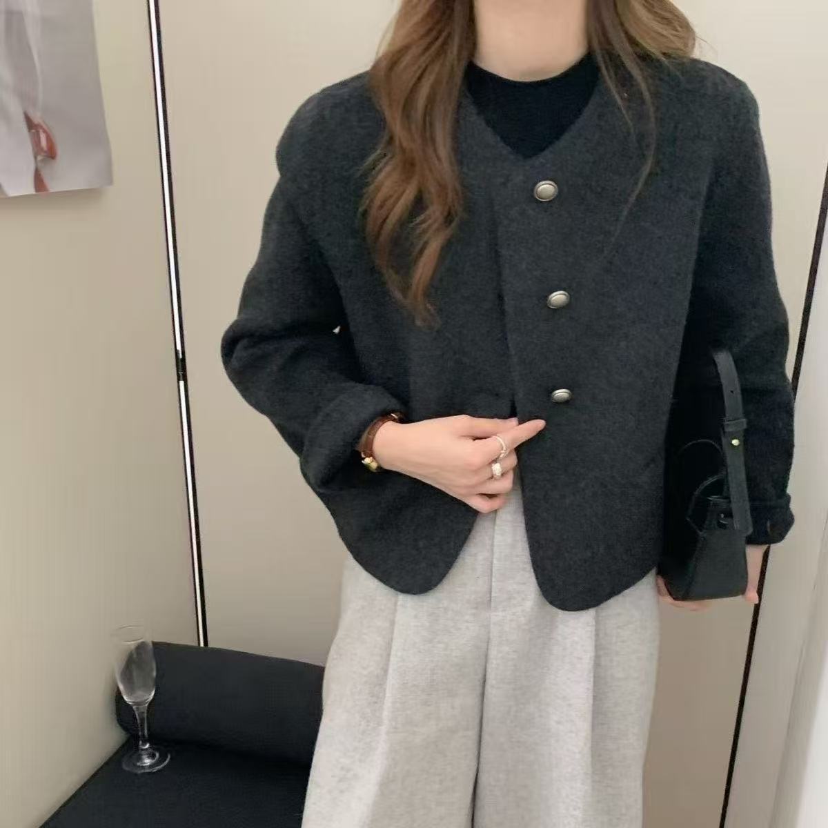 韩系小香风毛呢外套女秋冬季新款时尚小众设计感休闲短款