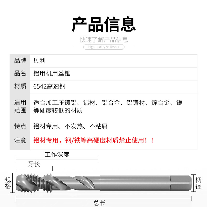 铝用丝锥丝攻机用螺旋丝锥攻丝攻牙钻头m3m4m5m6m8m10m12