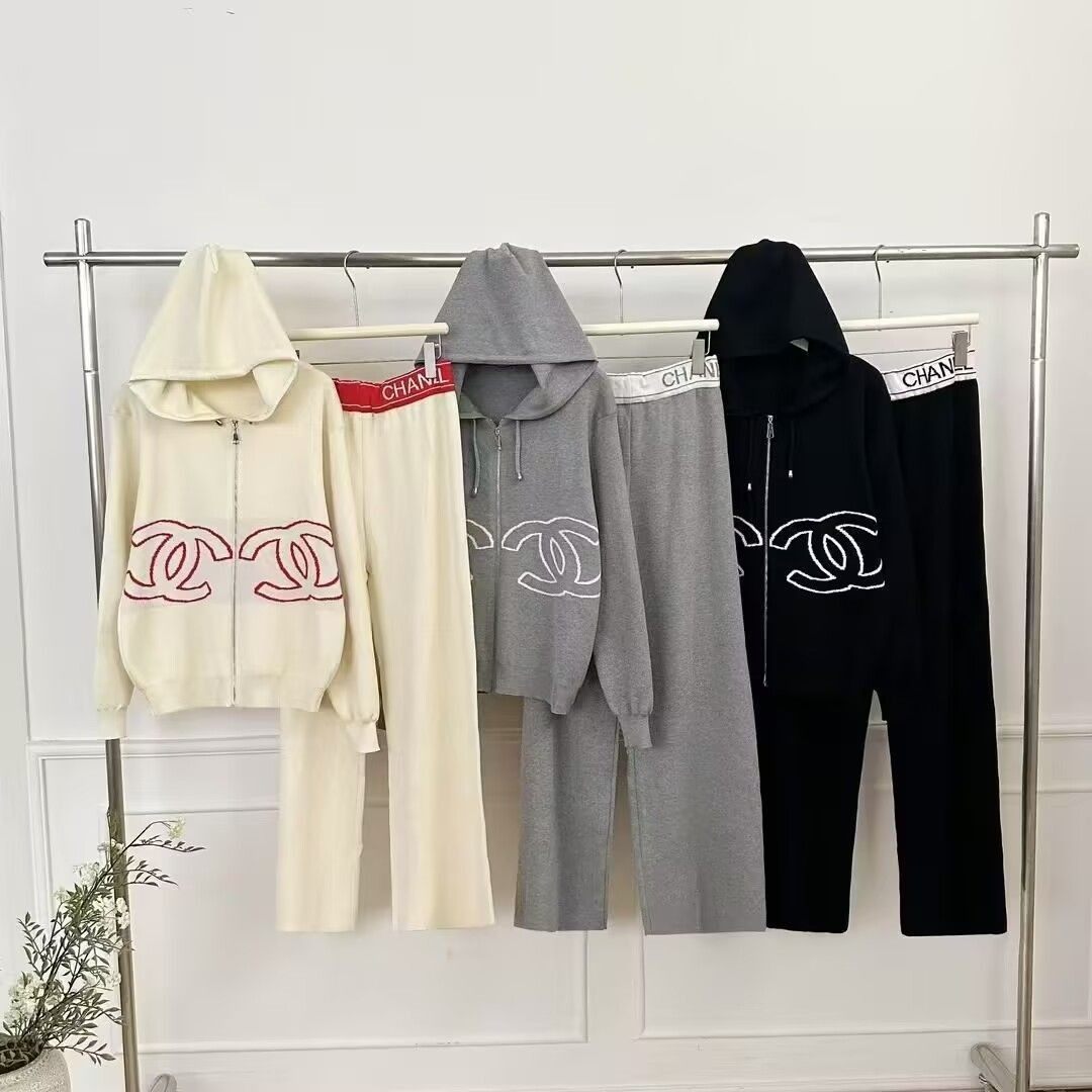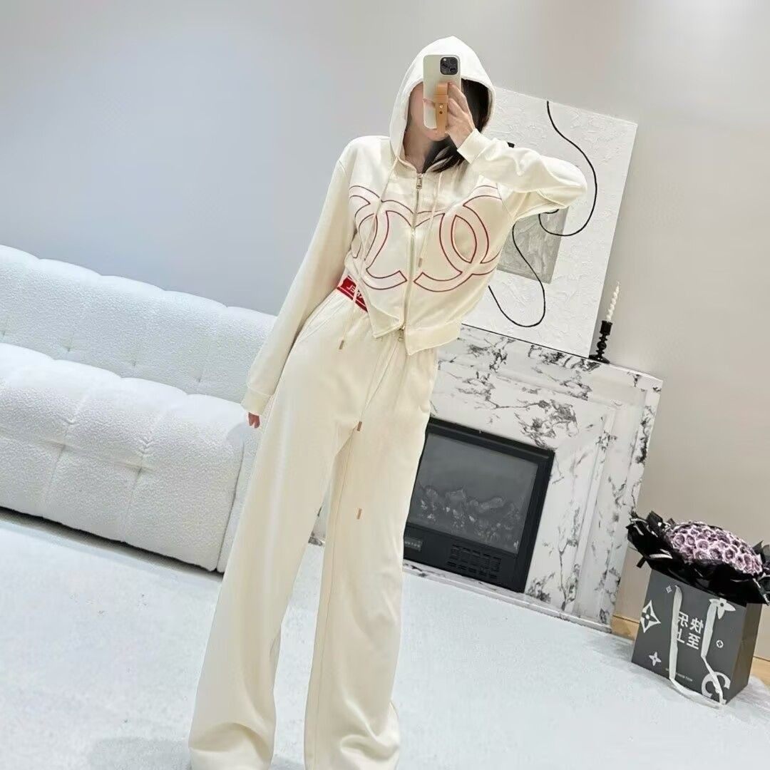 春秋2025新款小香风休闲运动针织套装女长袖连帽外套阔腿裤两件套