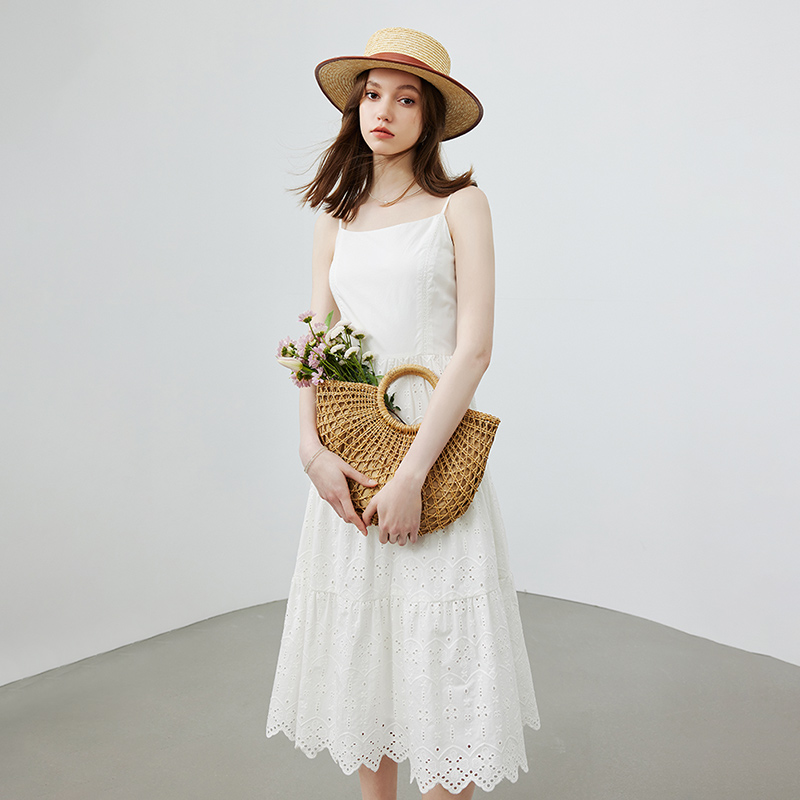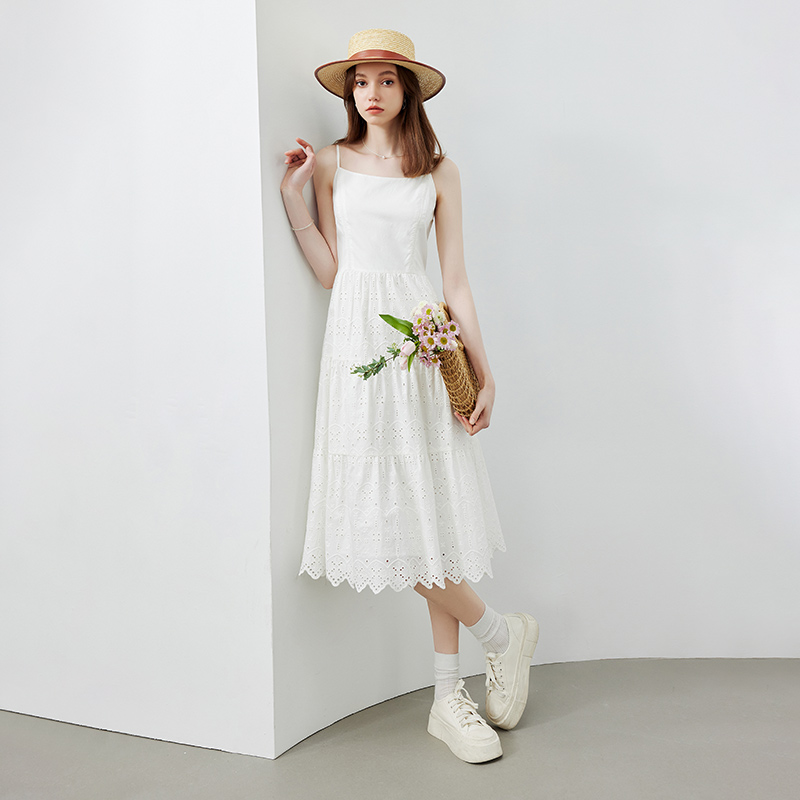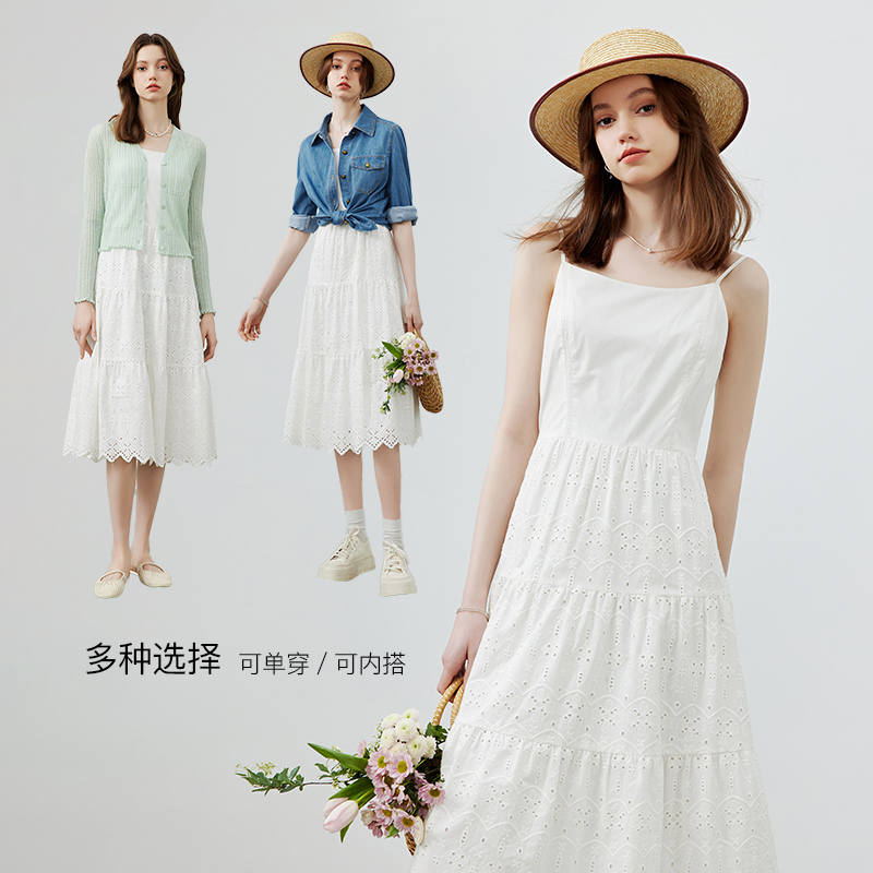 KBNE连衣裙女白色吊带裙长裙小白裙2025夏季新款小个子背心裙子
