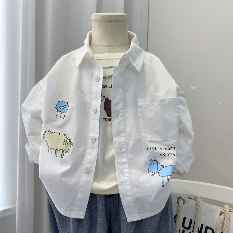 男童衬衫长袖春秋夏季纯棉儿童衬衣外套薄款洋气开衫韩版中童小童