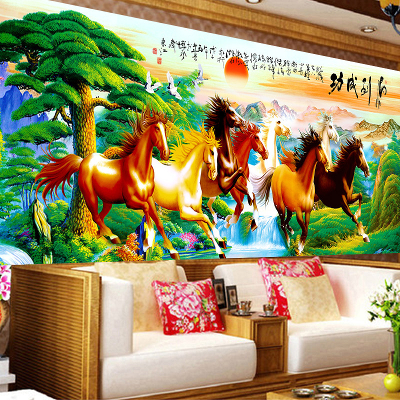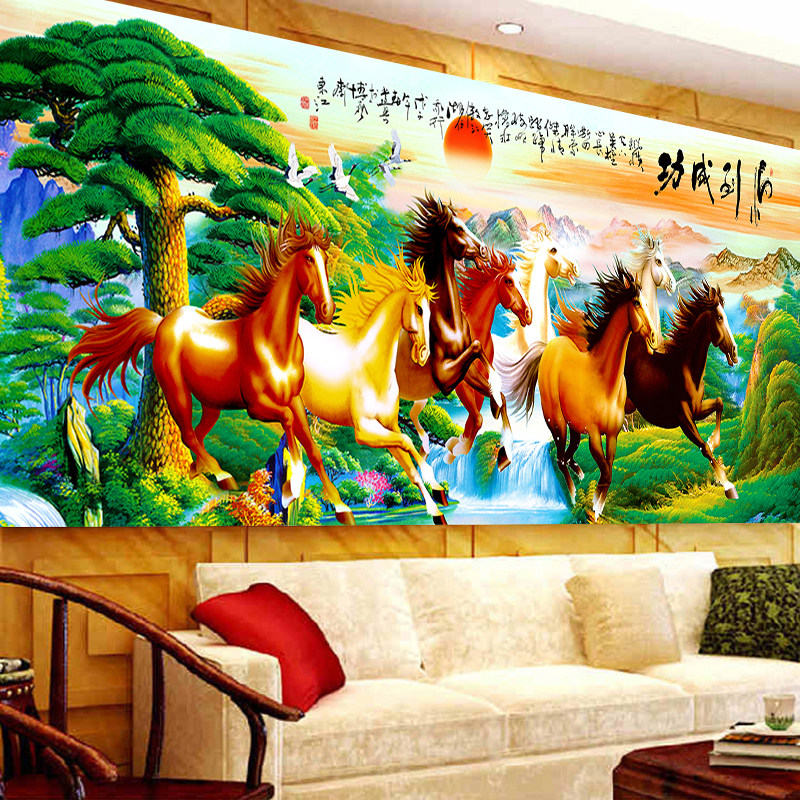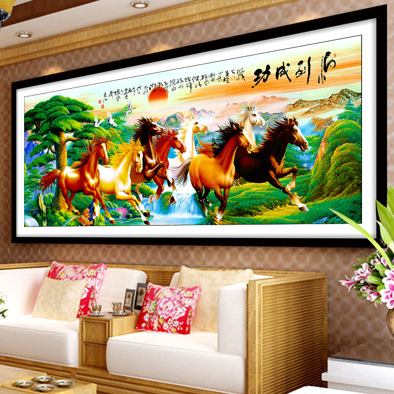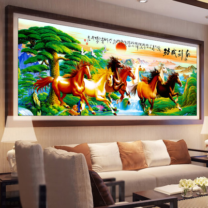 5d钻石画2026年新款满钻客厅风景马到成功贴钻十字绣八骏图钻石绣