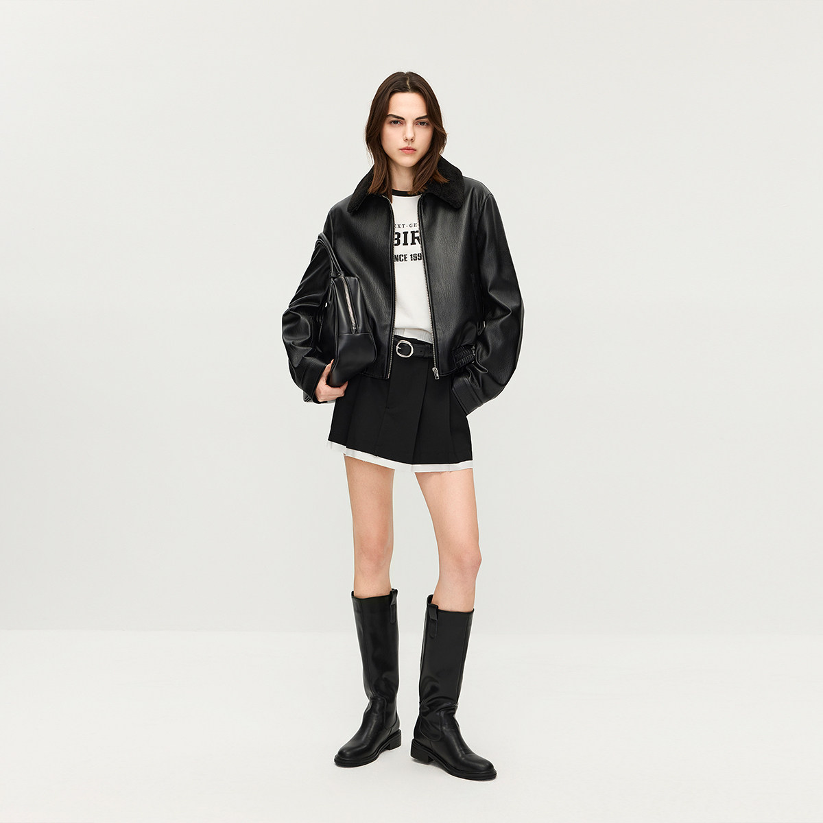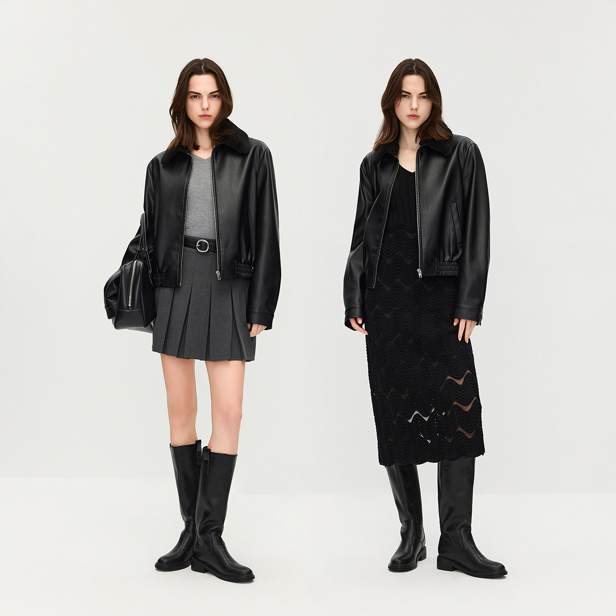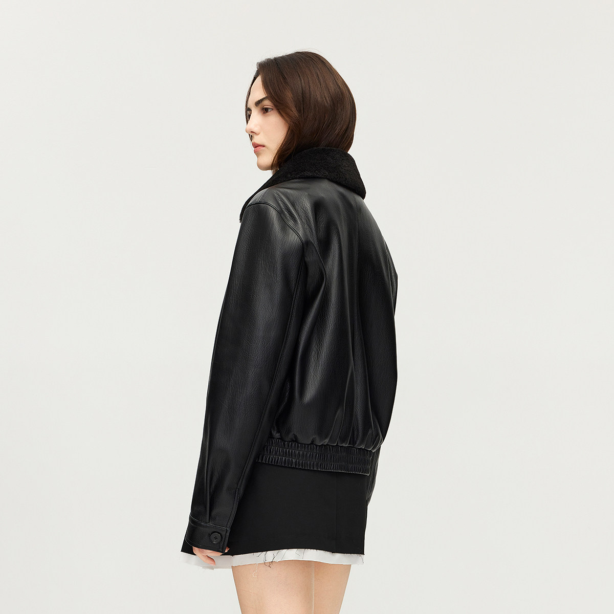 【特享折扣】欧时力可拆卸毛领夹克皮衣外套女哑光高级感2025秋冬